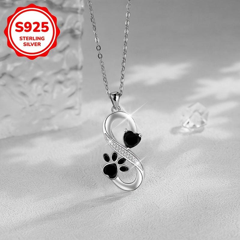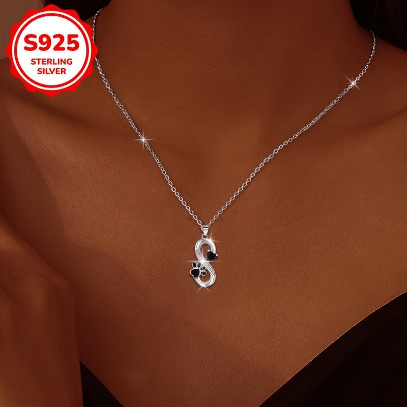 This pendant necklace features an infinity symbol intertwined with a dog paw print, crafted in 925 silver. A perfect daily wear accessory or gift for dog lovers.