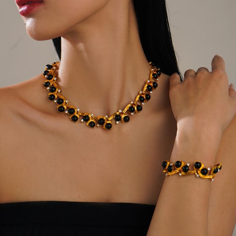 This set includes a necklace featuring acrylic beads and artificial crystals. Perfect for daily wear or special occasions.