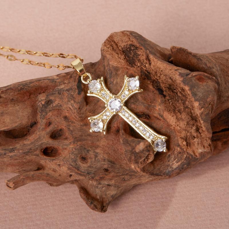 This hypoallergenic necklace features a sparkling cross pendant crafted from stainless steel, perfect for casual wear, parties, or year-round use.