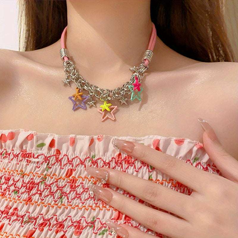 Enhance your beach look with this vibrant starfish charm necklace, perfect for a summer vacation.