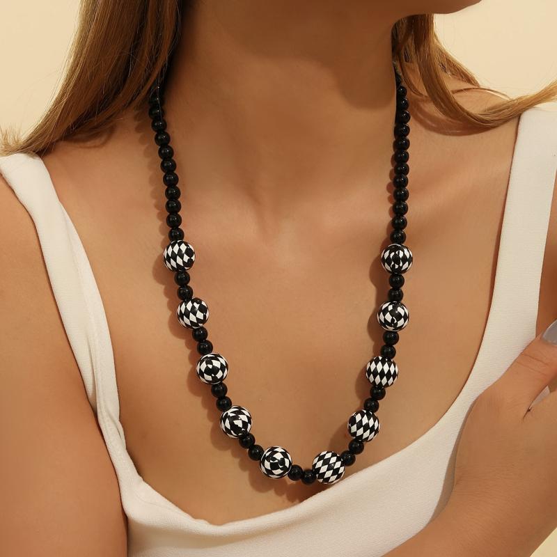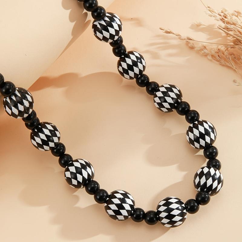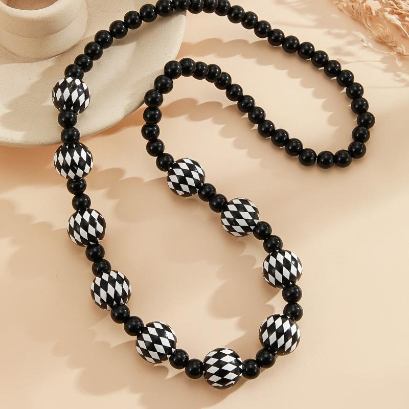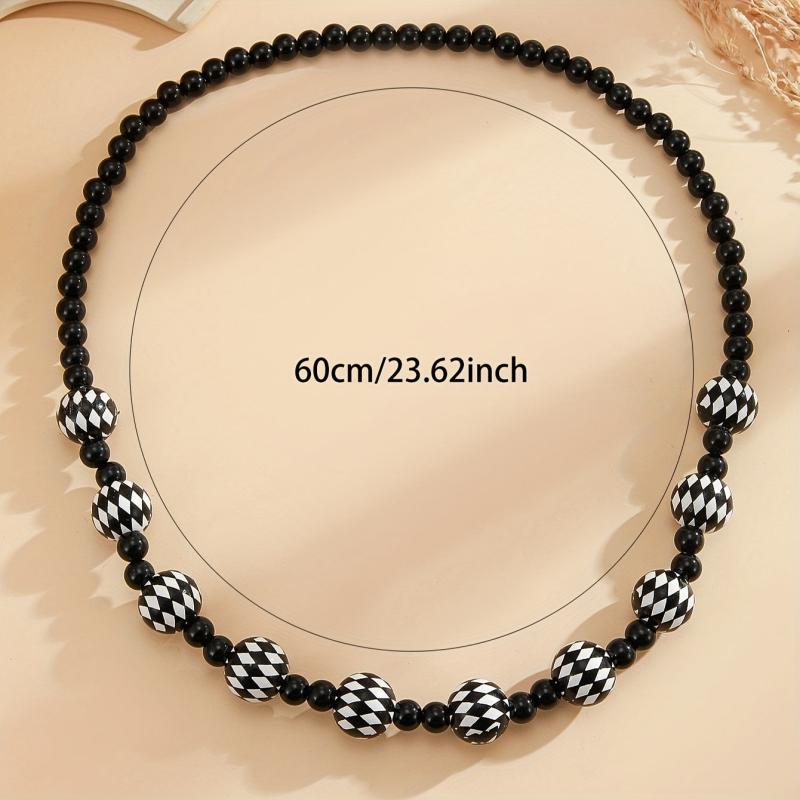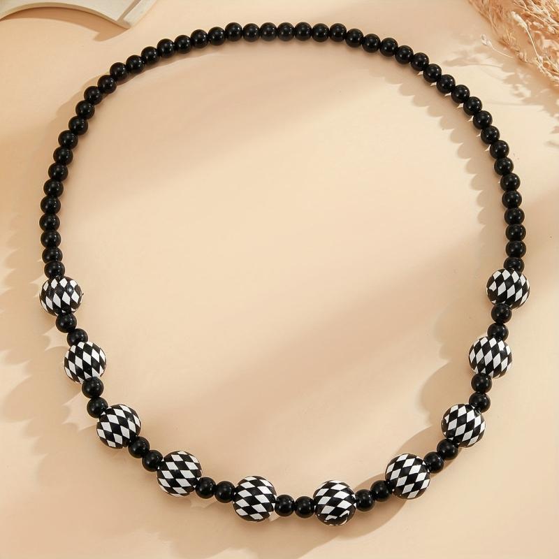 Add a trendy touch to your outfit with this Y2K hip hop style necklace featuring beads and a rhombus checkered pattern. Perfect for casual attire, travel, vacations, or as a birthday gift.