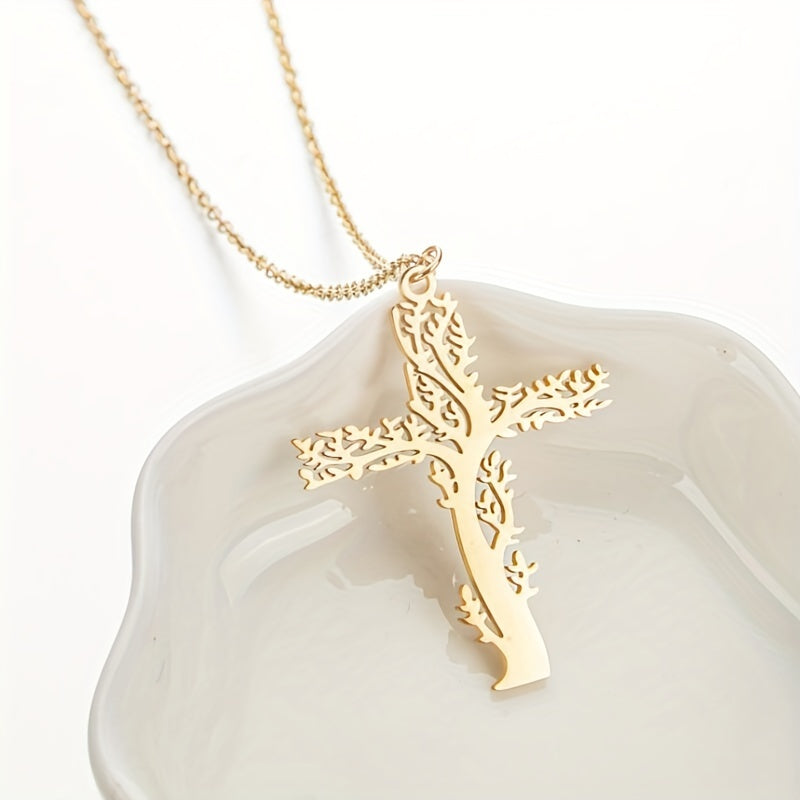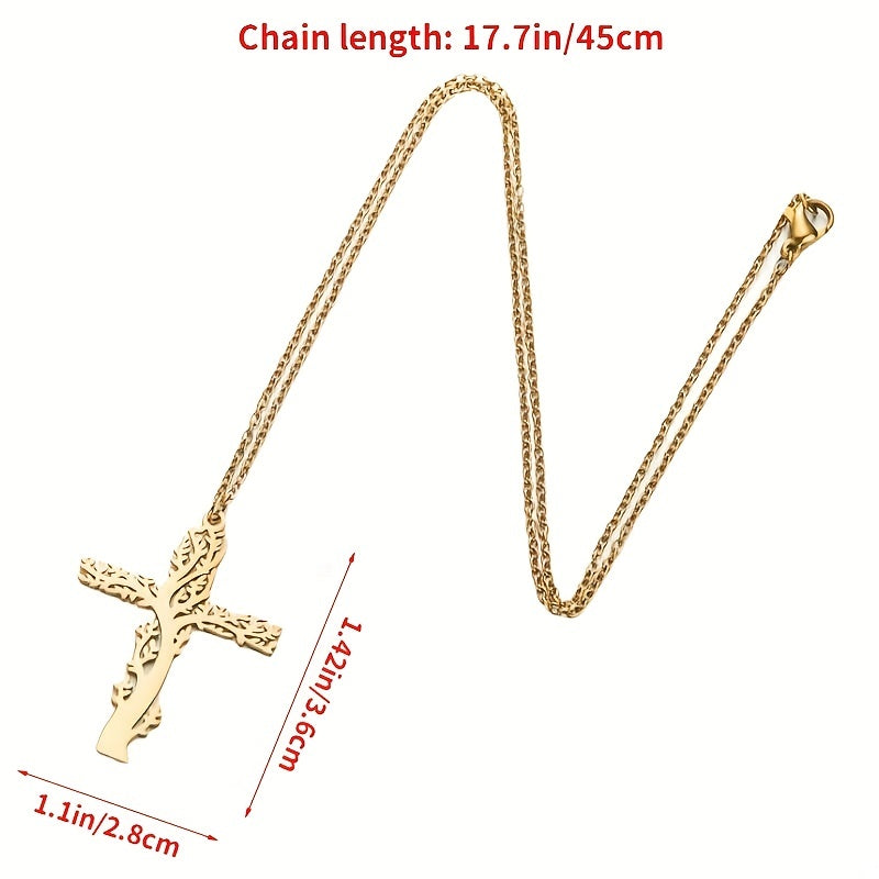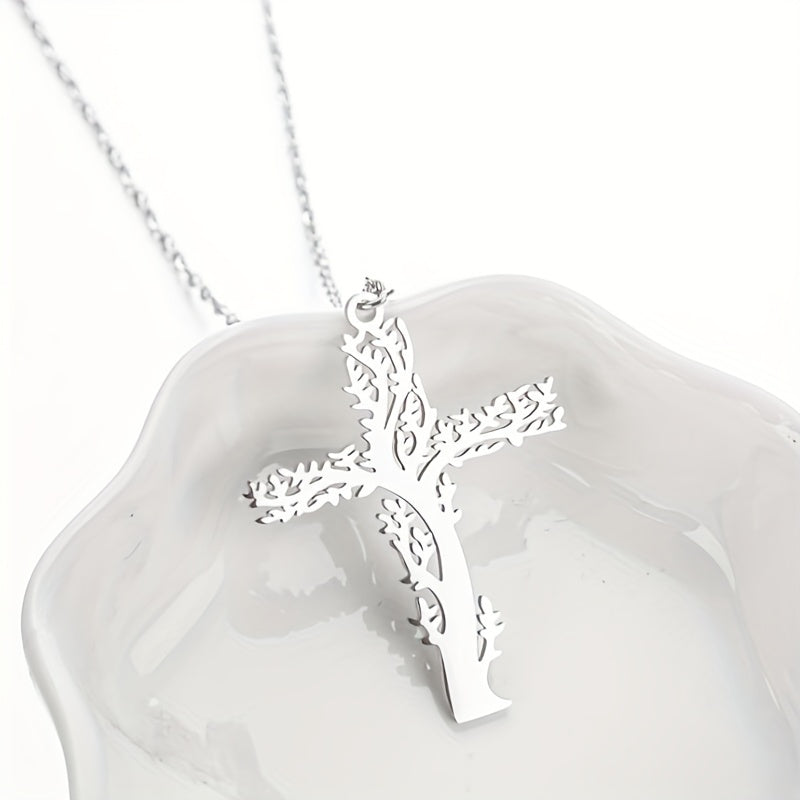 This stainless steel pendant necklace features a tree design, perfect for adding a touch of nature-inspired style to your look.
