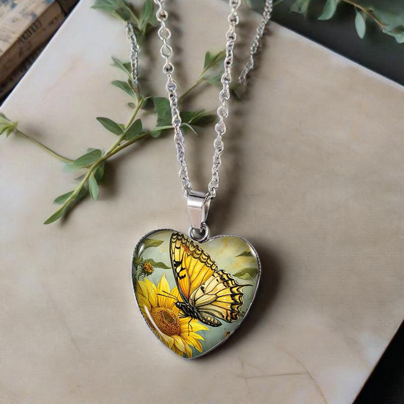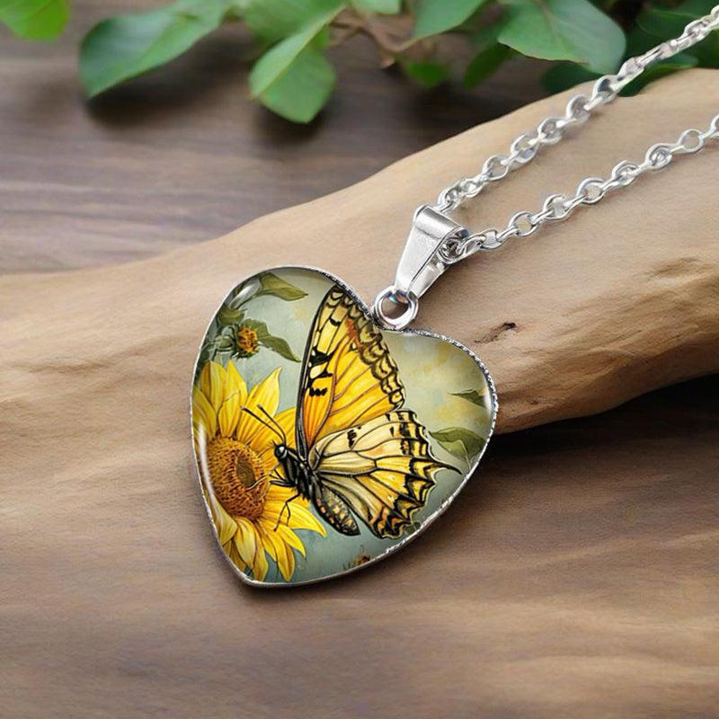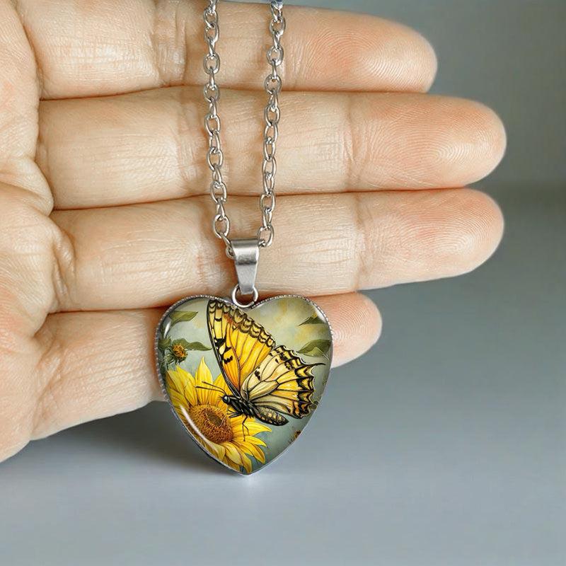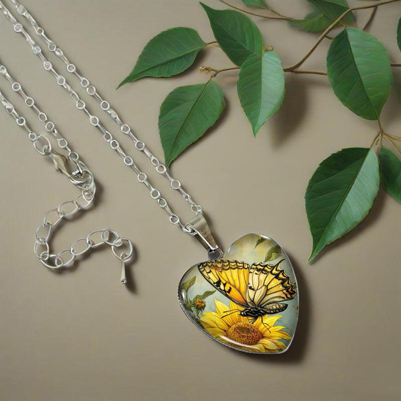 This exquisite necklace features a yellow butterfly flower heart-shaped pendant. It is a perfect piece of jewelry for men, adding a touch of elegance and style to any outfit.