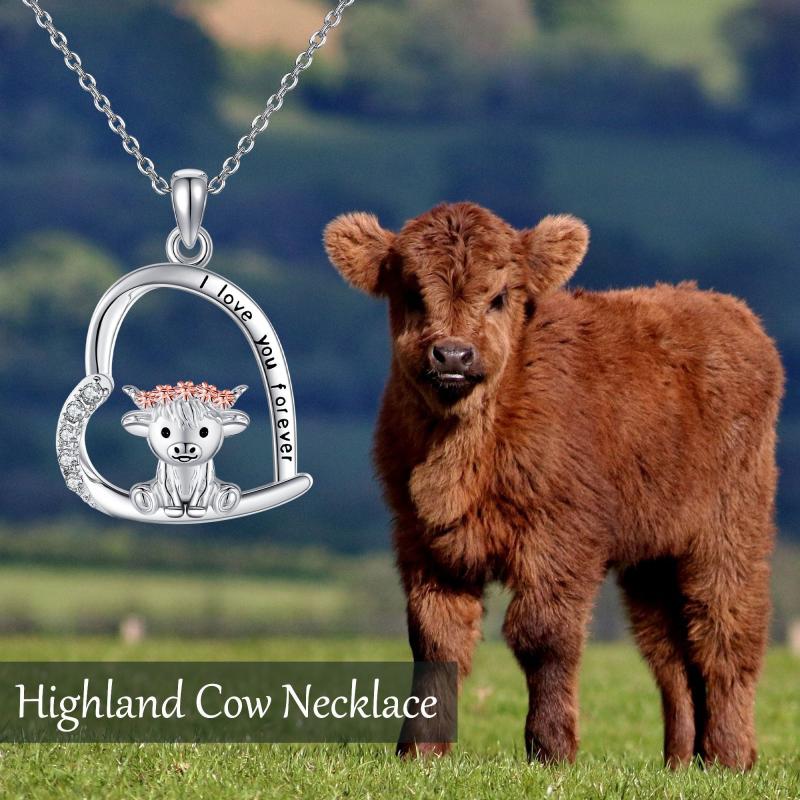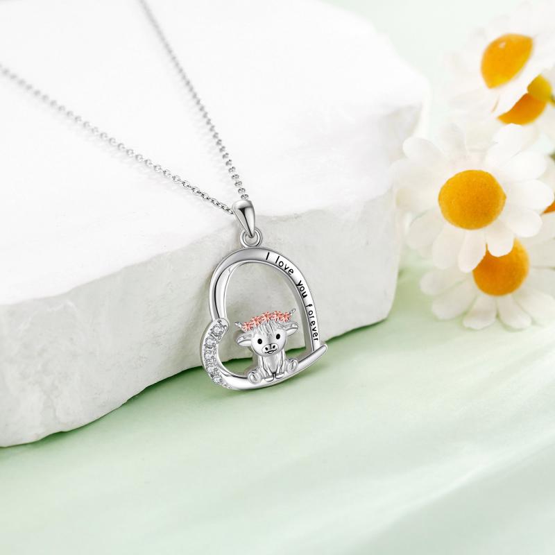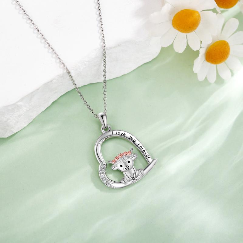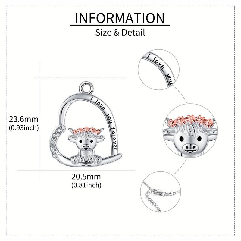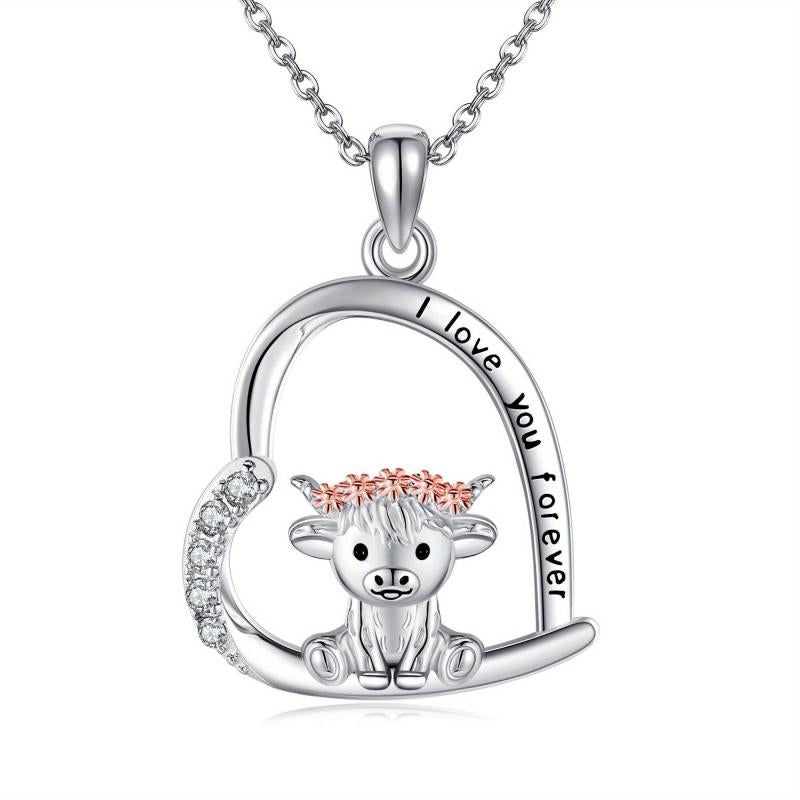 925 silver cow pendant necklace with sparkling gemstone accents, perfect for women as a gift for Christmas or daily wear.