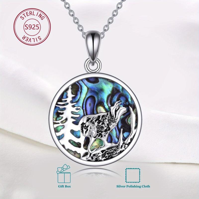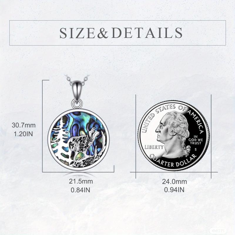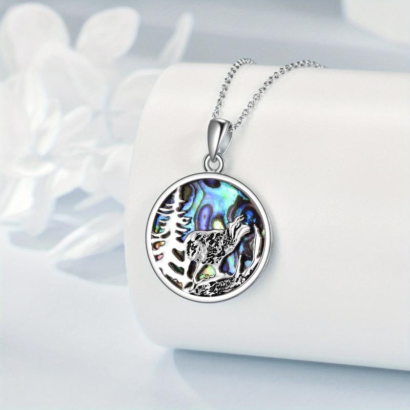This stunning sterling silver necklace features a mountain and tree design with a beautiful highland cow and abalone shell for a unique and stylish look. Perfect gift for mom, daughter, or any cow lover.