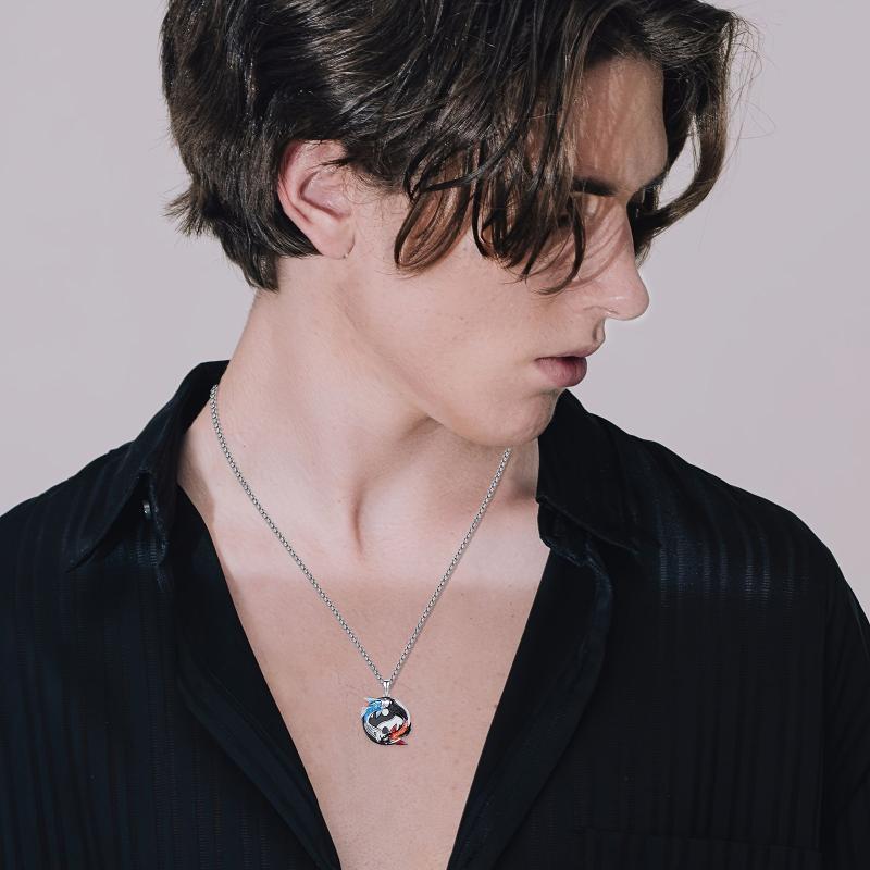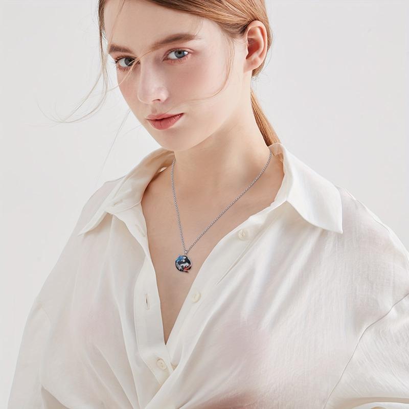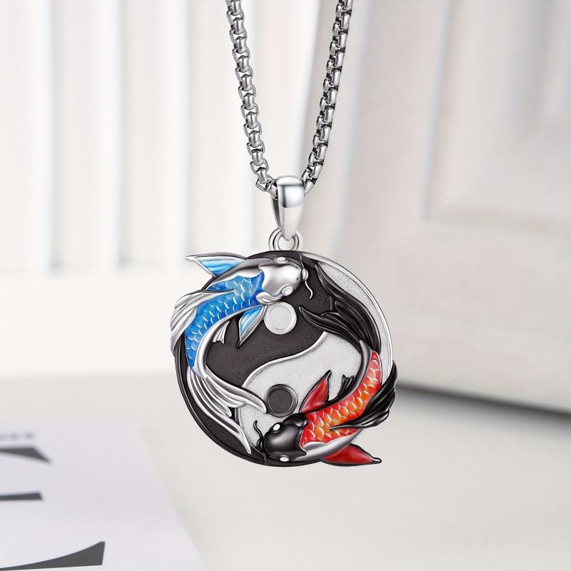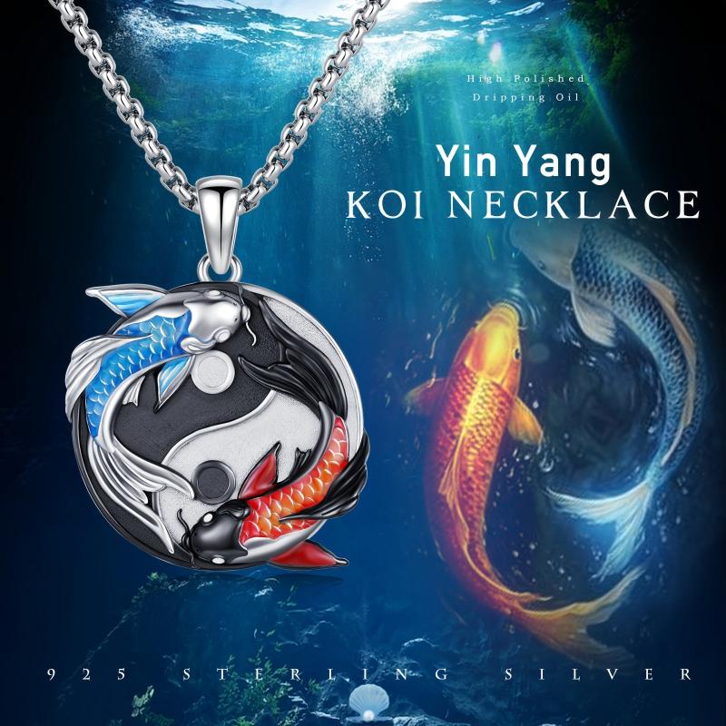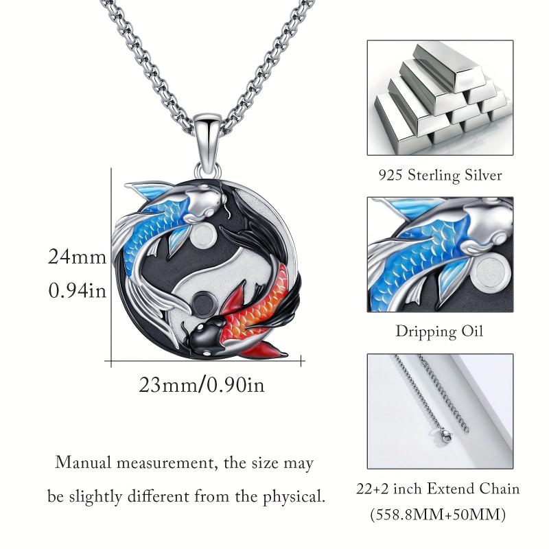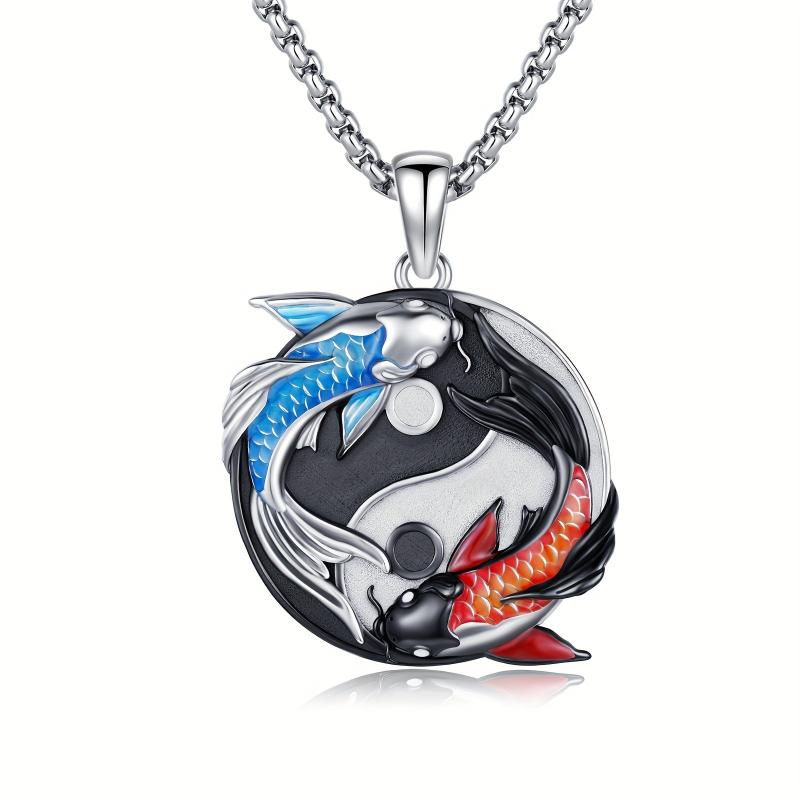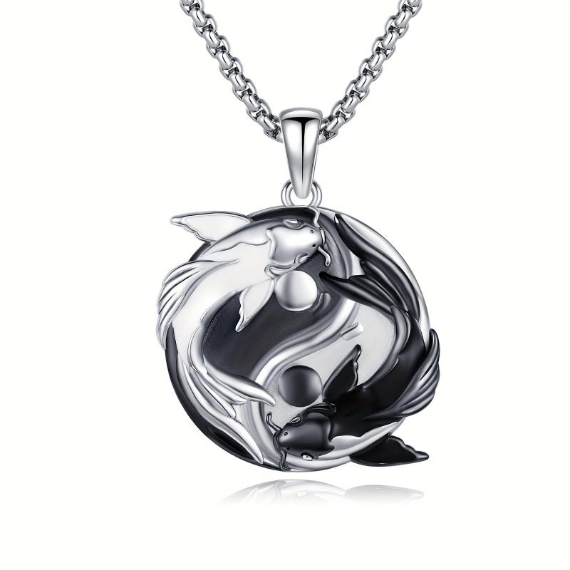 This Yin Yang necklace features a 925 sterling silver pendant chain, perfect for partners. It includes a koi fish design and is ideal for men and women seeking Yin Yang jewelry.