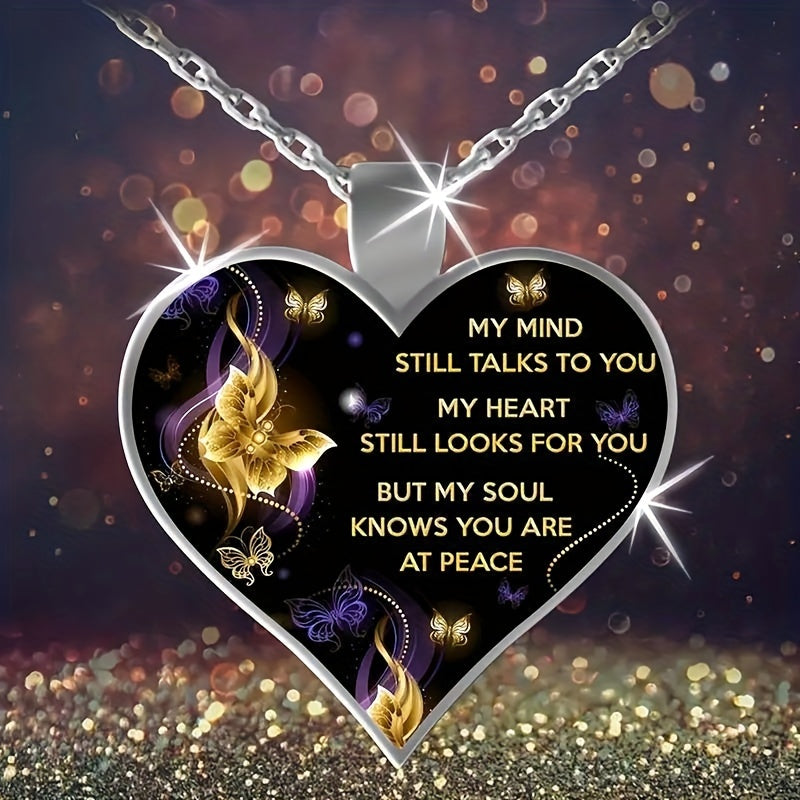 This creative heart butterfly pendant necklace is a stylish and generous gift for any occasion. Made of zinc alloy, it features a unique text design. Perfect for Thanksgiving, Christmas, birthdays, or any special event.