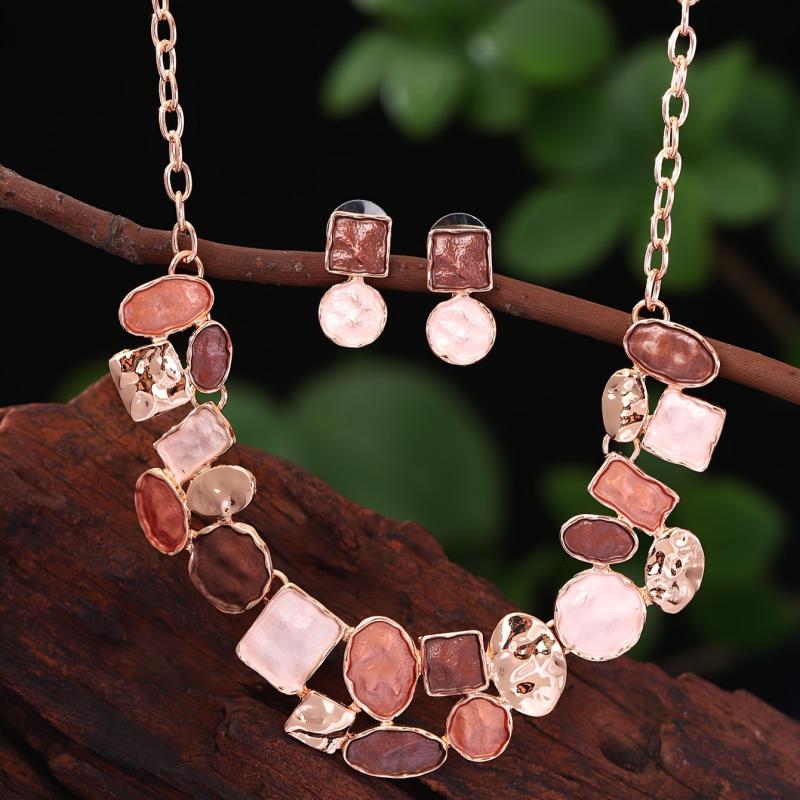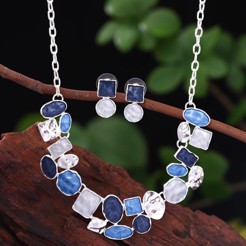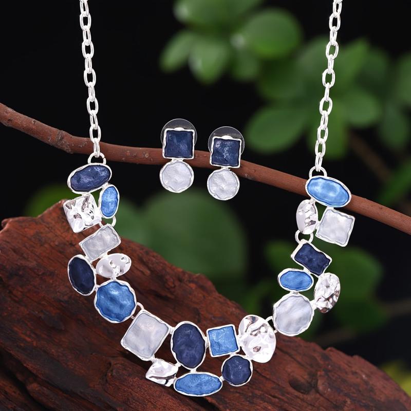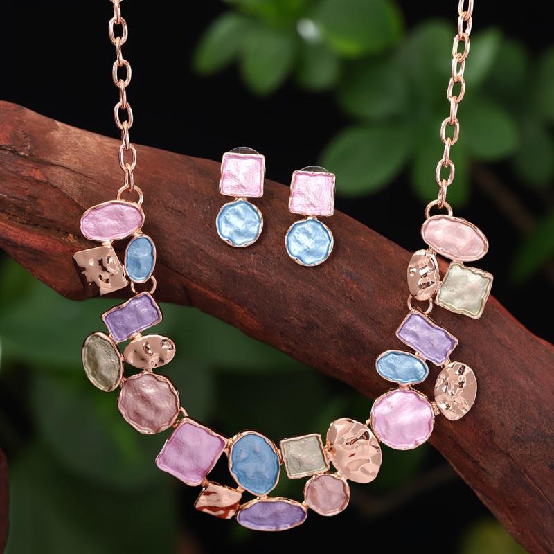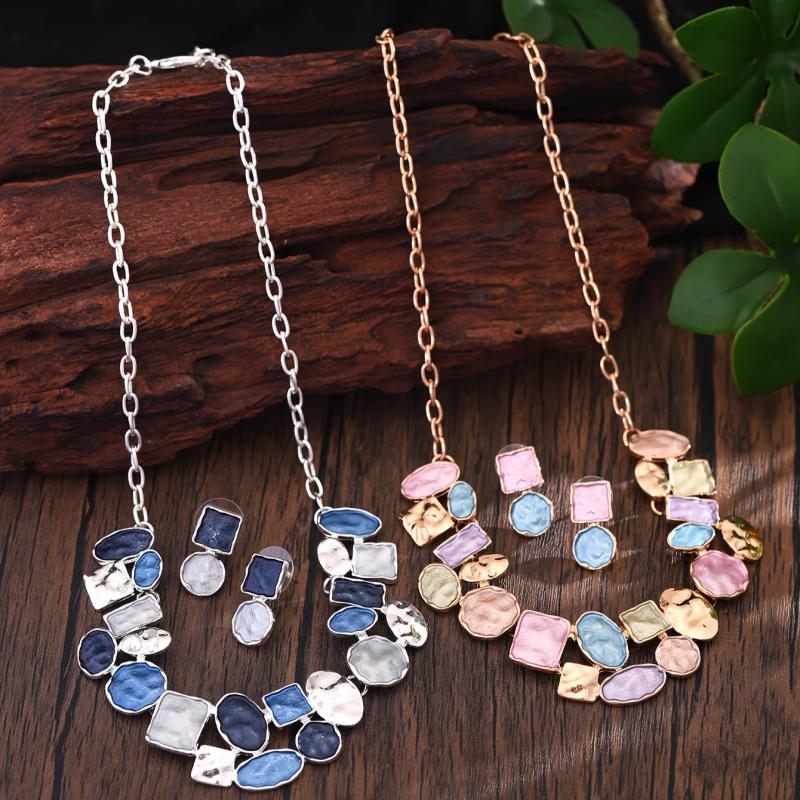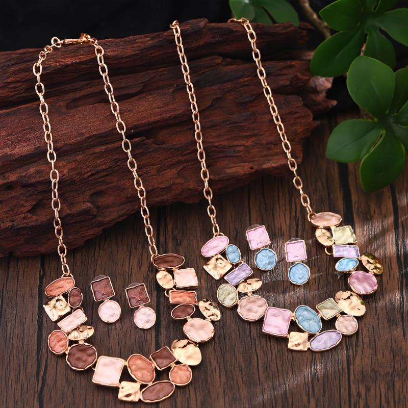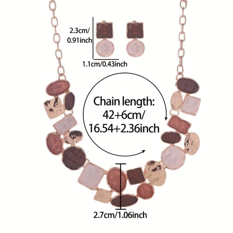 Elevate your style with this trendy zinc alloy jewelry set featuring a thin layered necklace and earrings. The adjustable geometric design and enamel finish make it a perfect accessory for weddings and anniversaries.