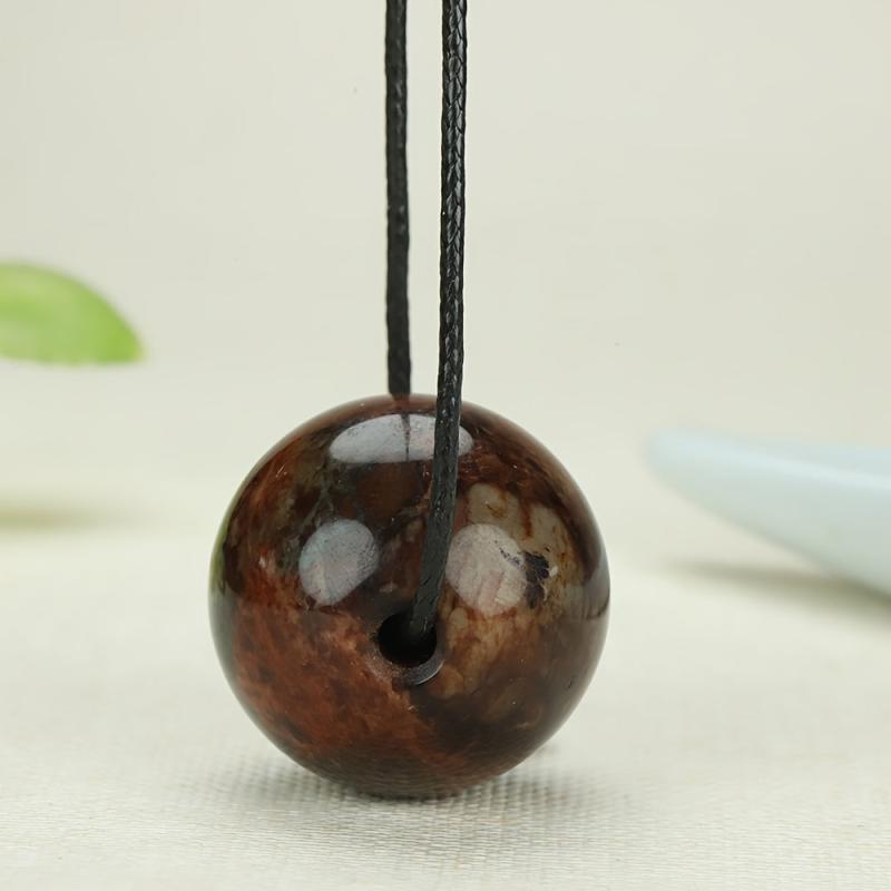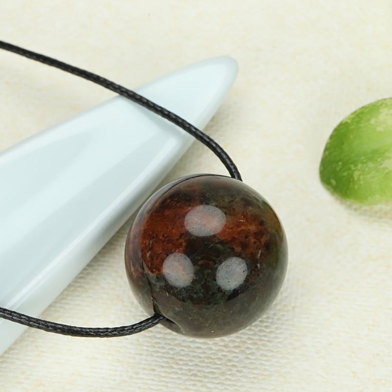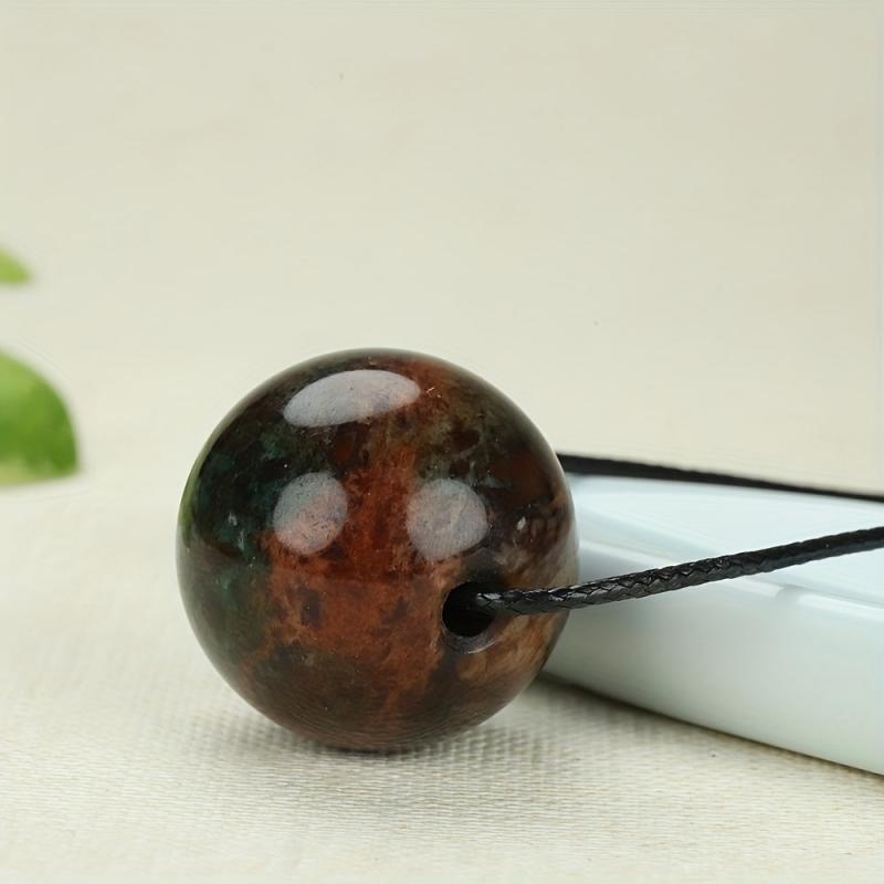 This unique pendant necklace features a mix of green, brown, and marbled beads, creating a funky retro look. Perfect for men who appreciate minimalist and natural designs.