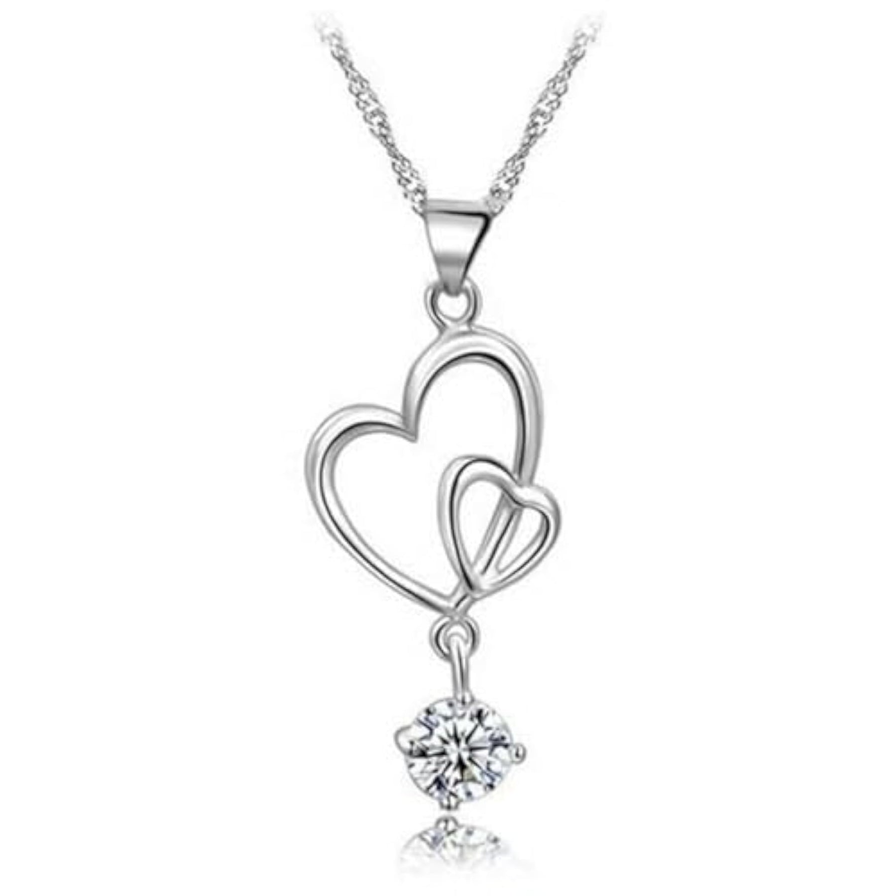 Make a statement with this dazzling double heart pendant necklace featuring intricate zircon details. Perfect gift for your girlfriend.