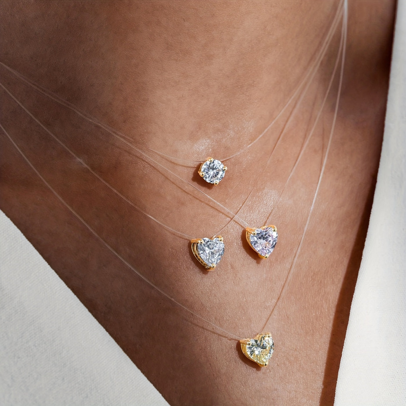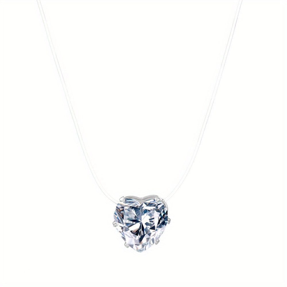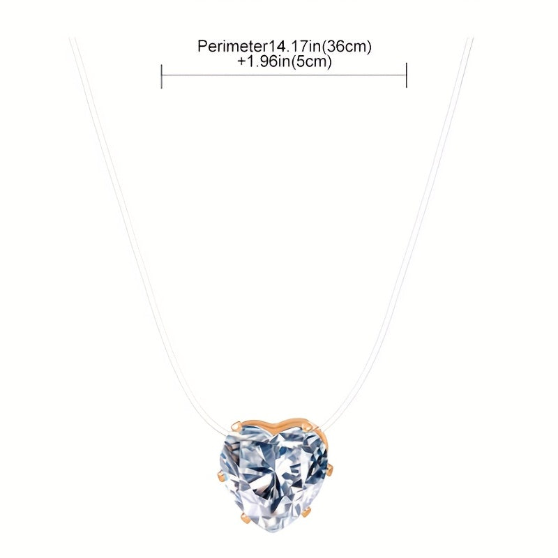Elegant and delicate necklace with a transparent invisible fishing line and a stunning zircon heart pendant. Made with high-quality 14K plated materials, this accessory is perfect for adding a touch of sophistication to any outfit.
