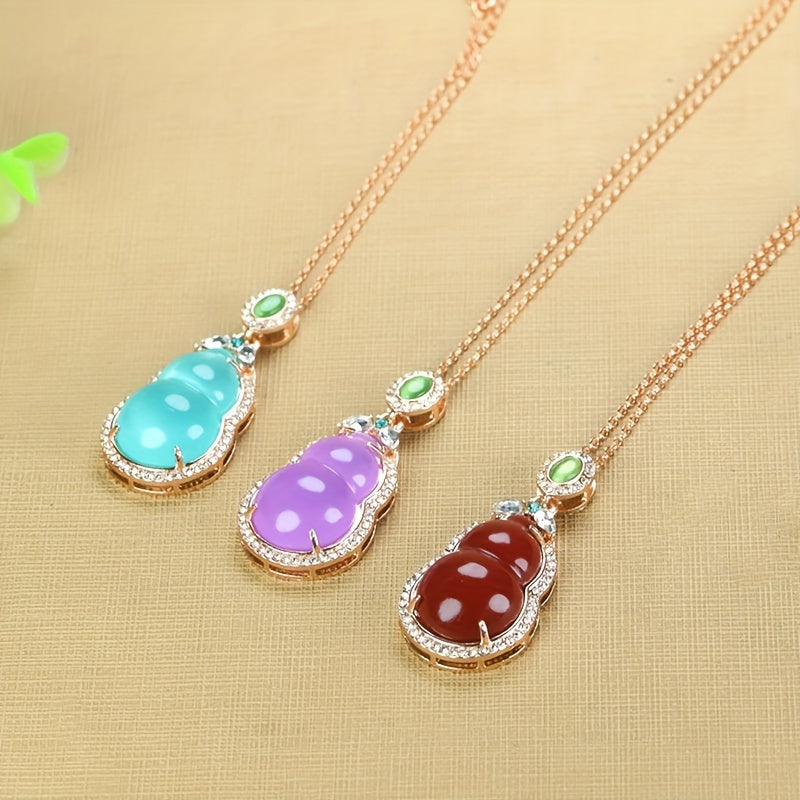 This exquisite pendant features zircon inlaid multicolor gourd design. Ideal for both men and women, perfect as a birthday gift for friends.