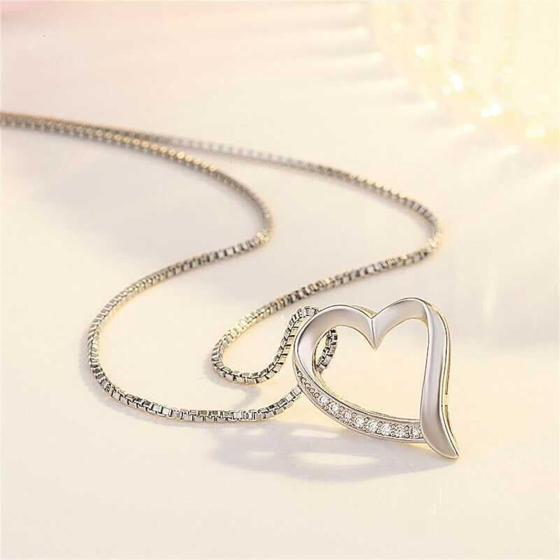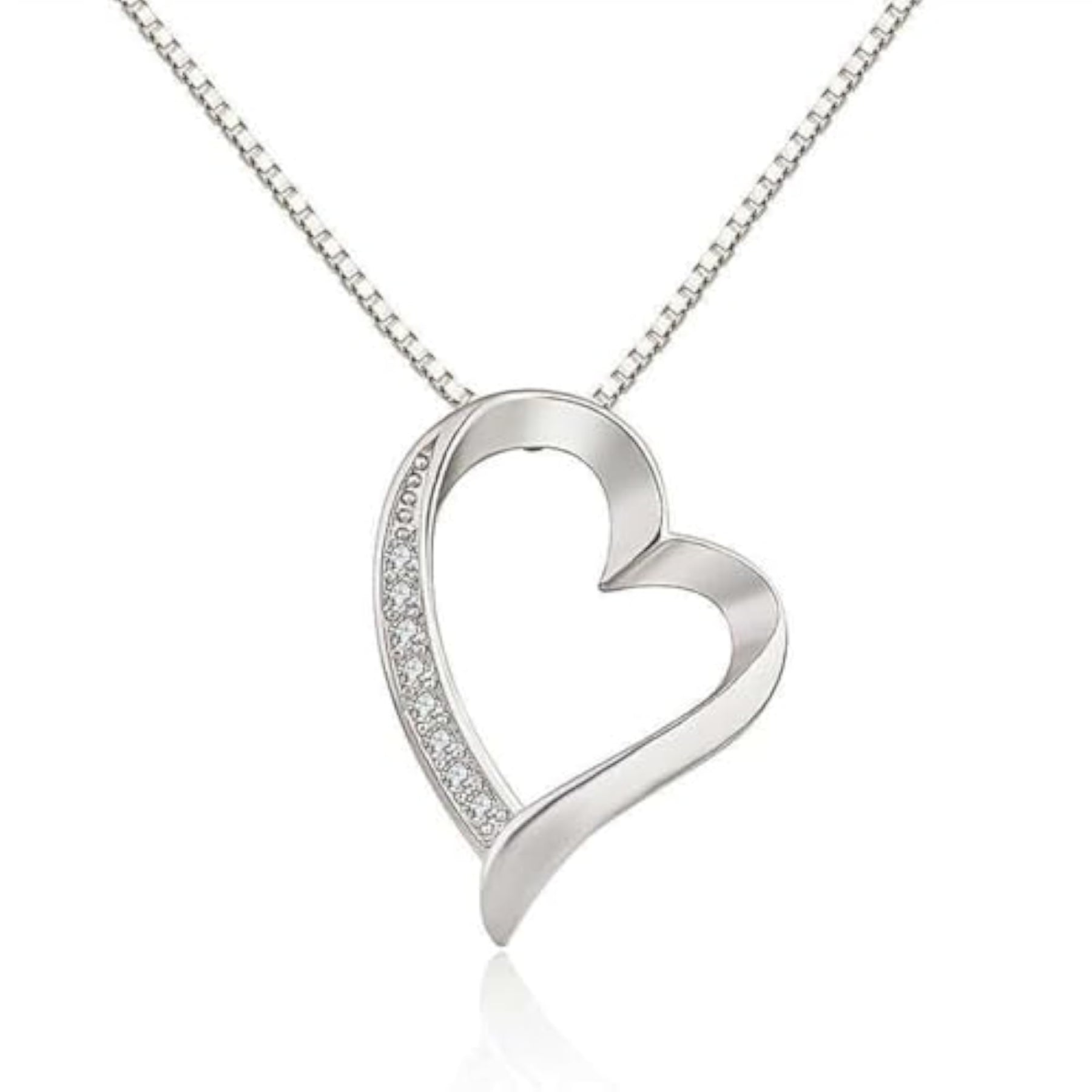 This stunning heart-shaped pendant necklace is adorned with sparkling zirconia stones, making it a perfect gift for your girlfriend or mom. The plated finish adds a touch of elegance to any outfit.