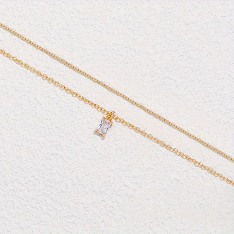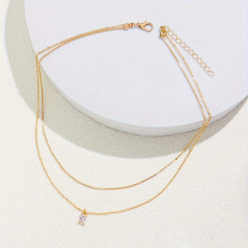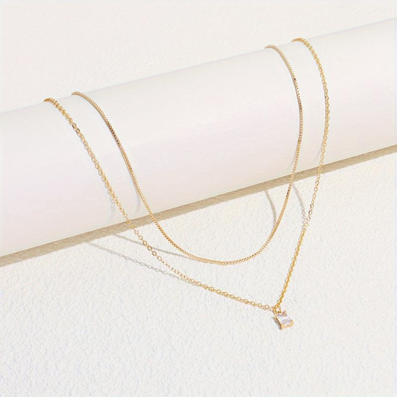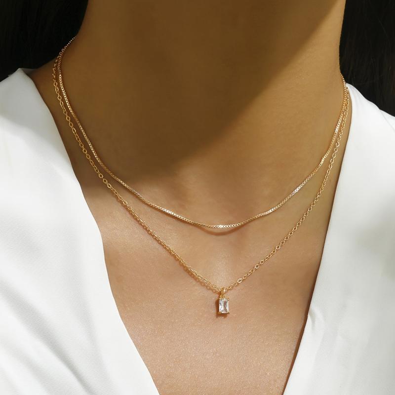 Add a touch of elegance to your everyday look with this square zirconia pendant double layer necklace. Perfect for casual outings or date nights, this necklace is a must-have for your jewelry collection.