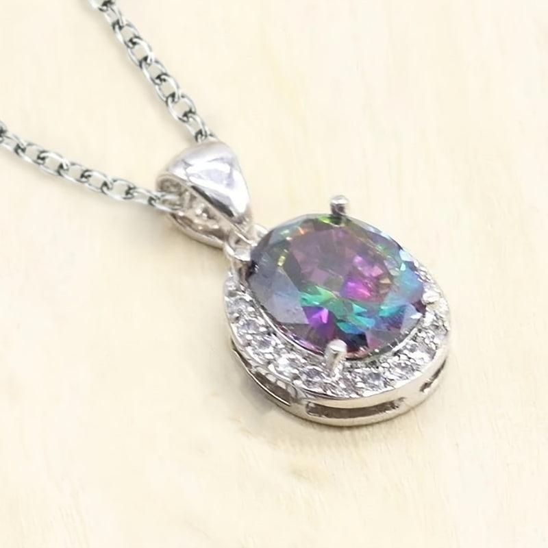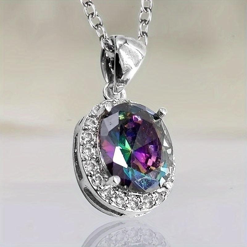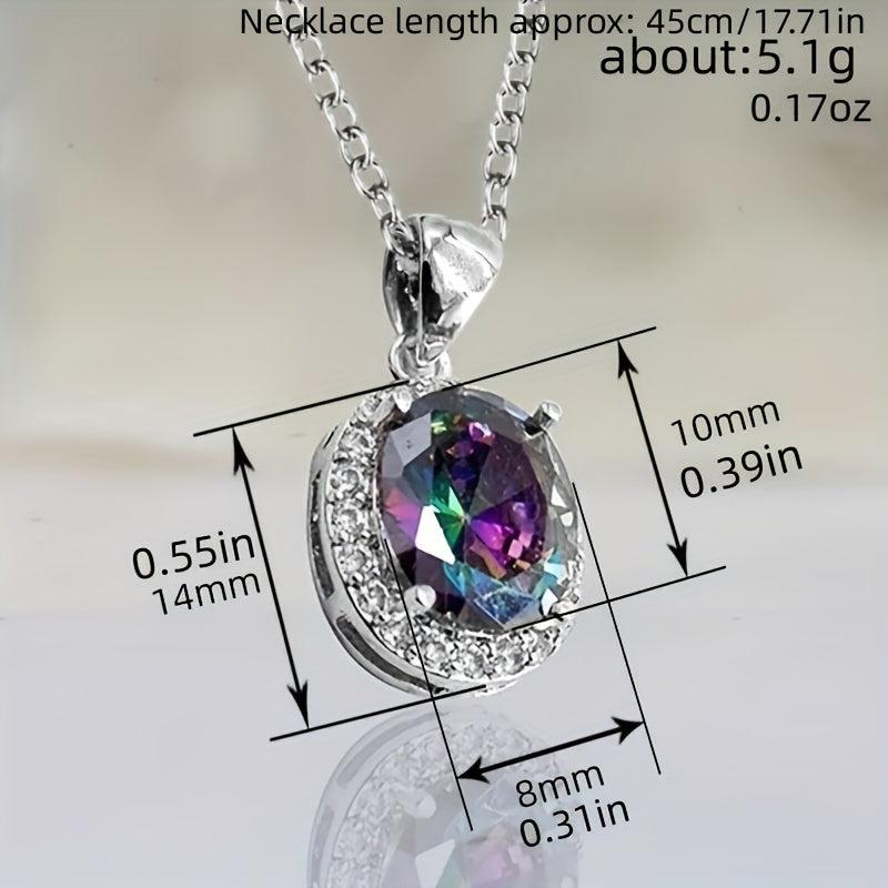 Elegant oval synthetic zirconia pendant necklace made of copper. Perfect for all seasons, ideal for parties and banquets.