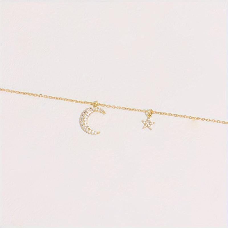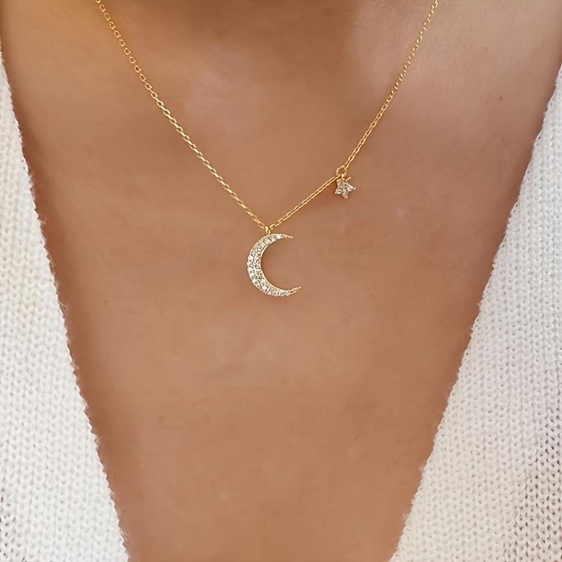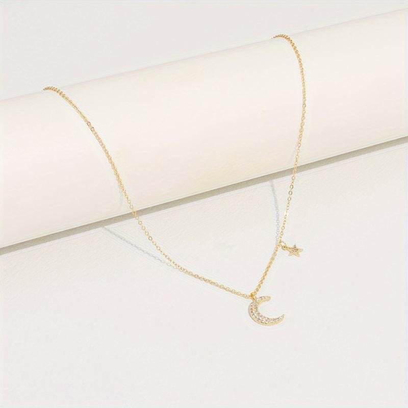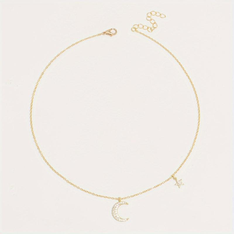 This delicate necklace features a zirconia star and moon pendant, perfect for adding a touch of elegance to any outfit. It makes a great birthday or party gift for special occasions like Eid or Ramadan.