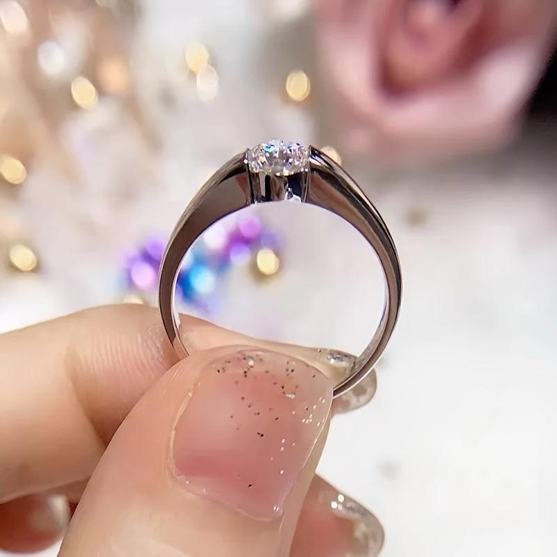 Add a touch of elegance with this silvery ring featuring a 0.5CT solitaire stone. Perfect for engagements, weddings, anniversaries, or as a special gift for your loved one.