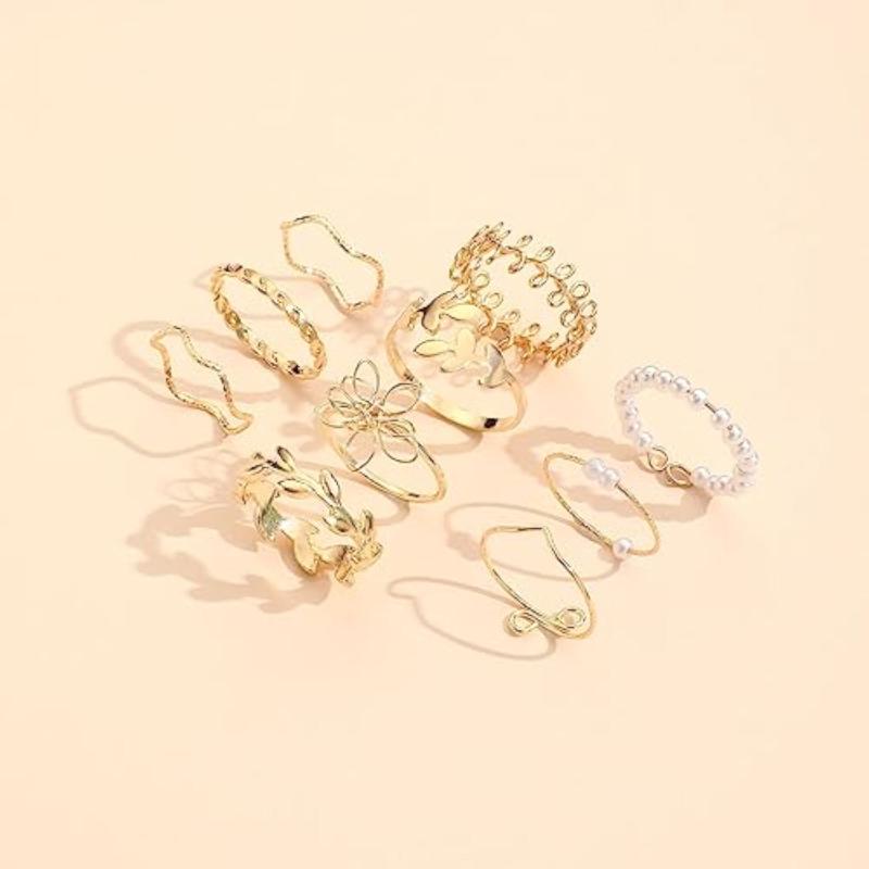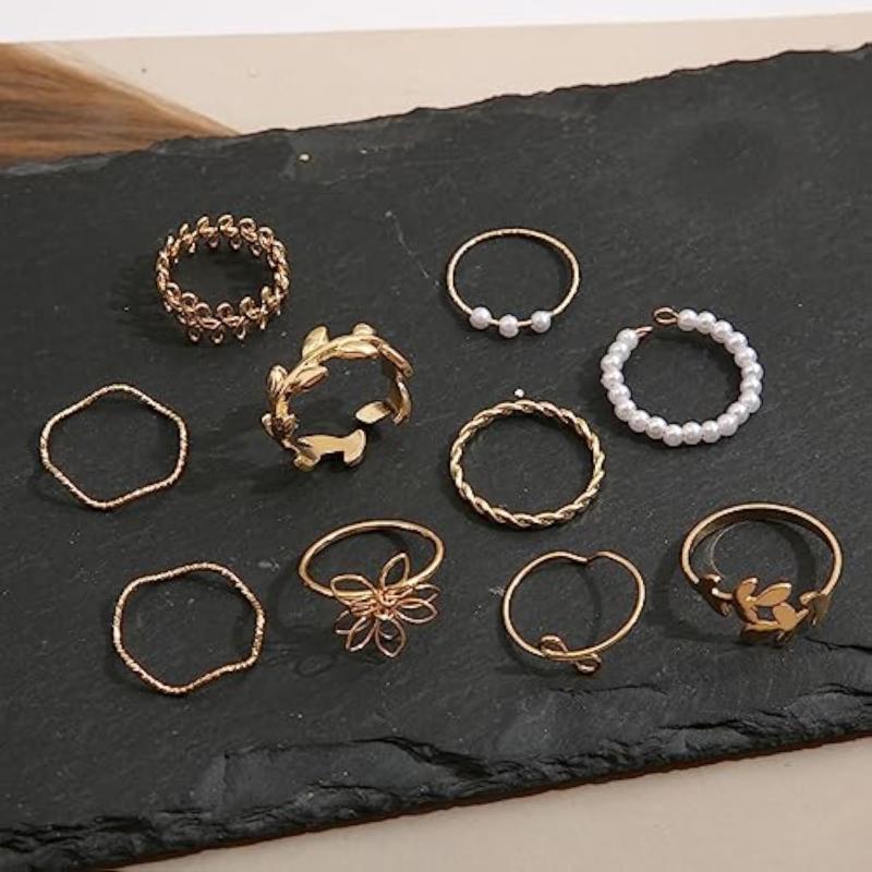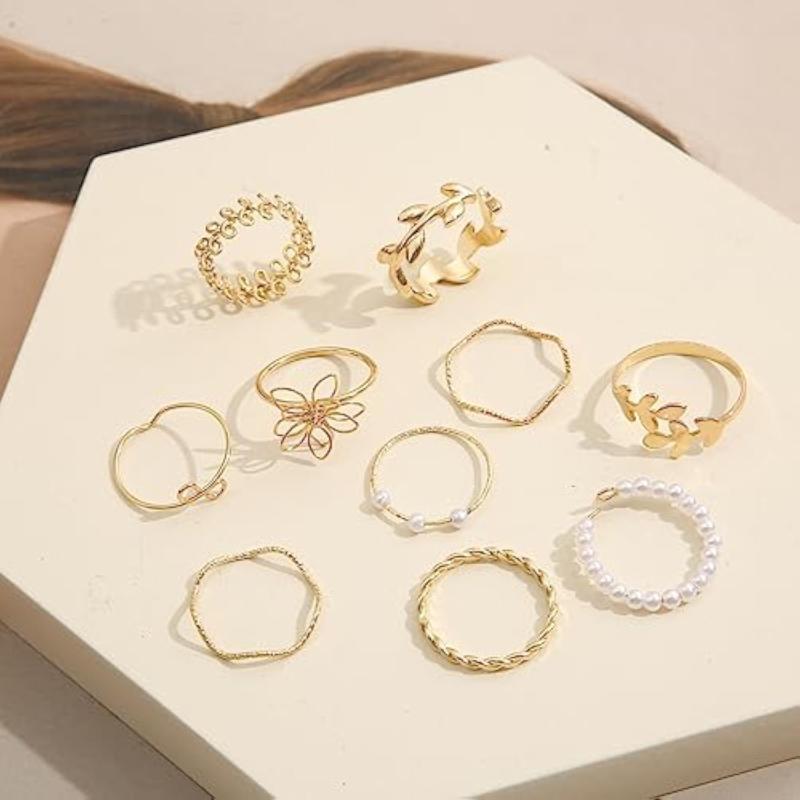 Elevate your style with this set of 10 trendy rings. Perfect for daily wear or special occasions.