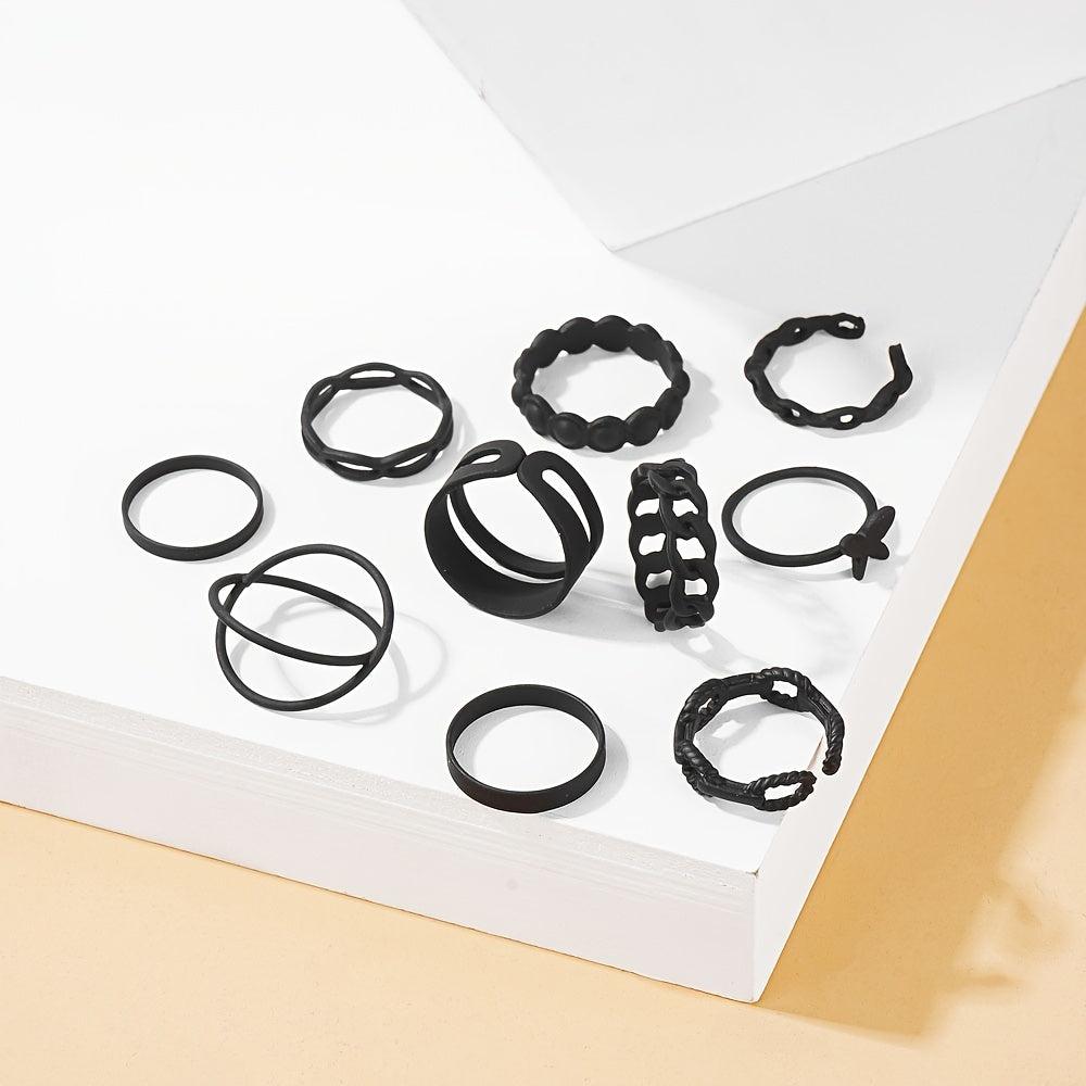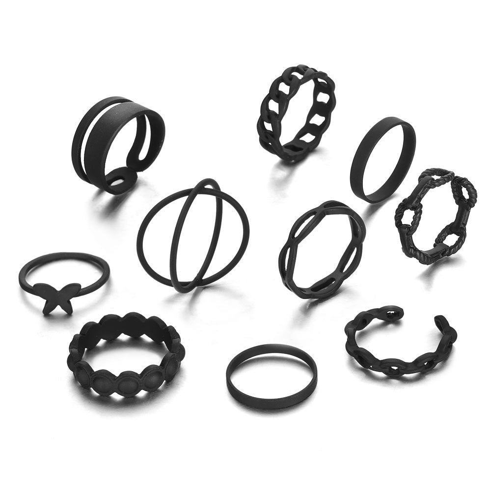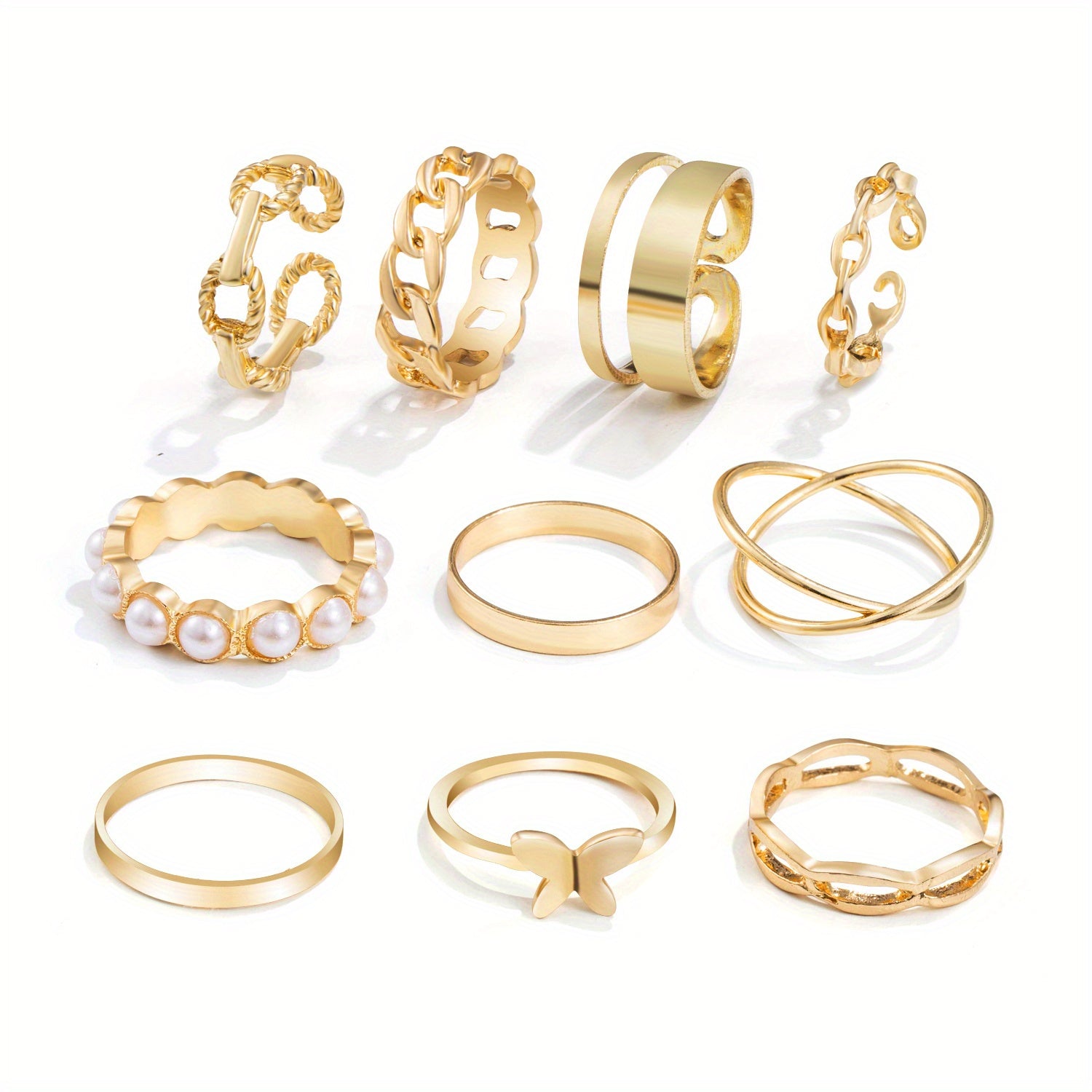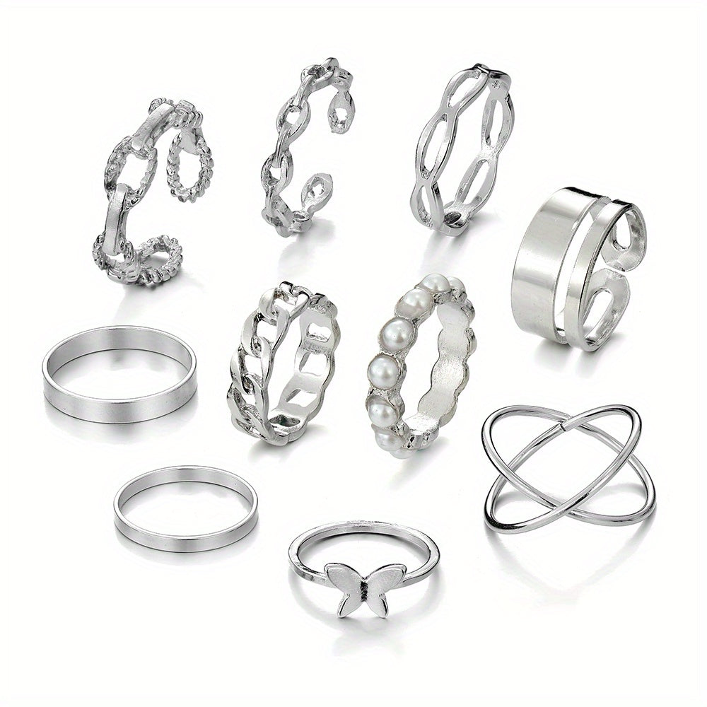 Enhance your Halloween party look with this set of 10 vintage chain rings. Perfect gift for women who love punk jewelry. Stand out with unique knuckle rings!