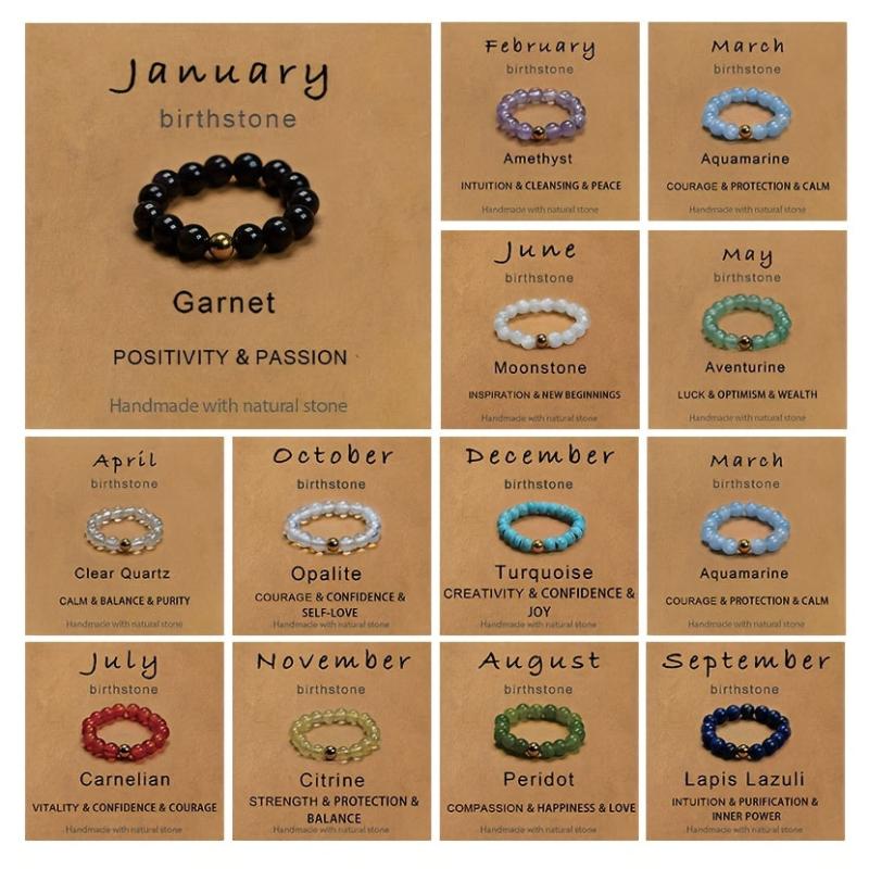 Celebrate birthdays with this stunning 12-month birthstone ring featuring 14k gold plated beads and bohemian style. Each stone has depth variations, making it a unique and thoughtful gift for birthdays, Valentine's Day, or anniversaries.