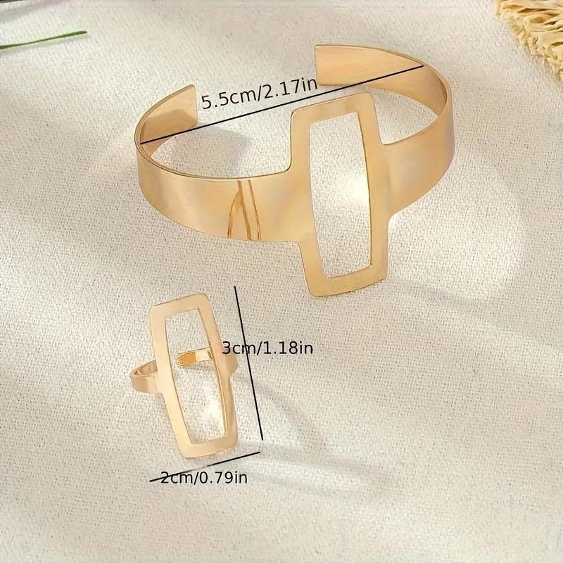 Elegant open cuff bracelet and ring set designed for daily wear. The set is made of high-quality iron with no mosaic. Perfect jewelry set for all seasons.