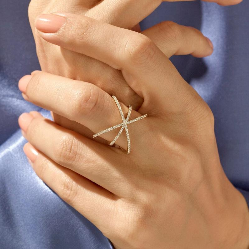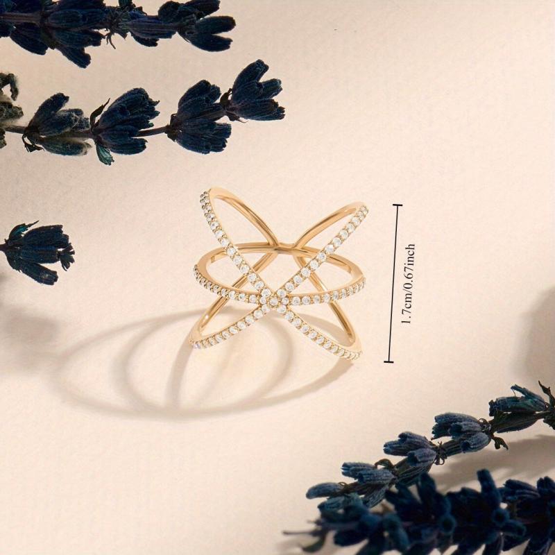 This stunning ring features a layer cross hollow design adorned with sparkling synthetic gemstones, making it perfect for weddings and engagements. The 14K golden plating adds a touch of elegance to any outfit.