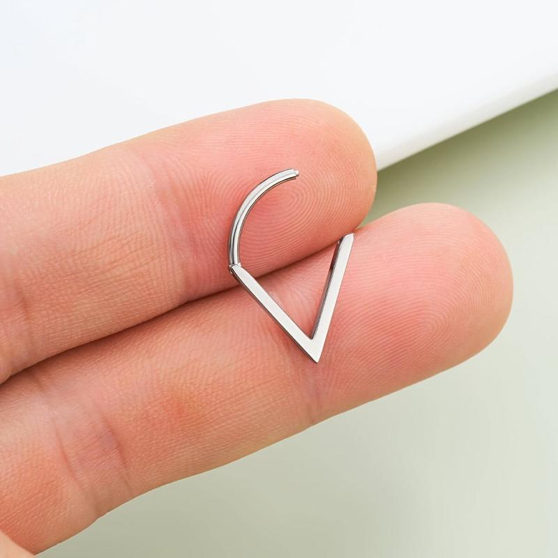 This 16G titanium septum ring features a stylish triangle design, ideal for daily wear. Hypoallergenic and lightweight, a perfect accessory or gift for women.