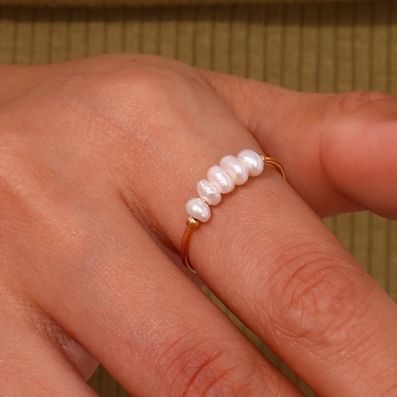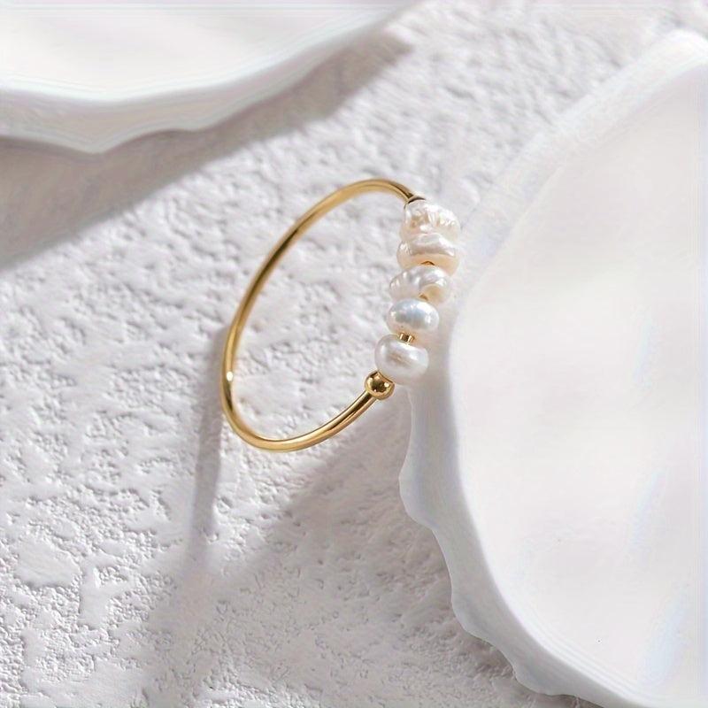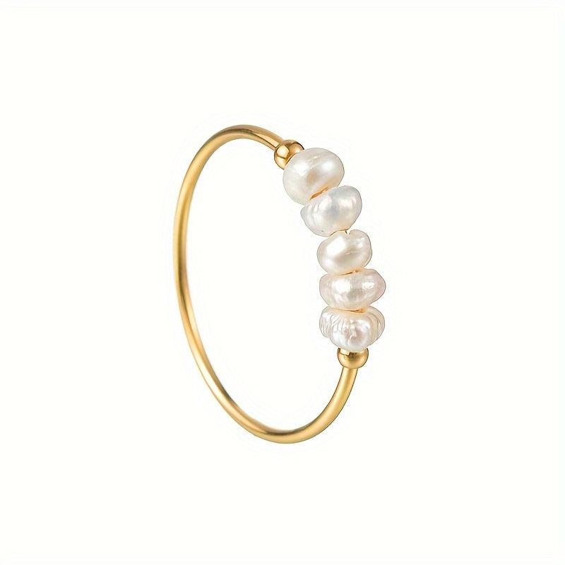 Upgrade your style with this stunning freshwater pearl ring. Made of hypoallergenic stainless steel plated in 18K gold, it is durable and water-resistant.