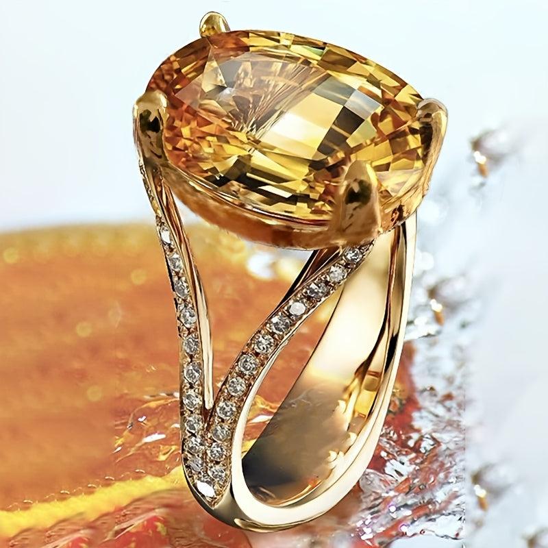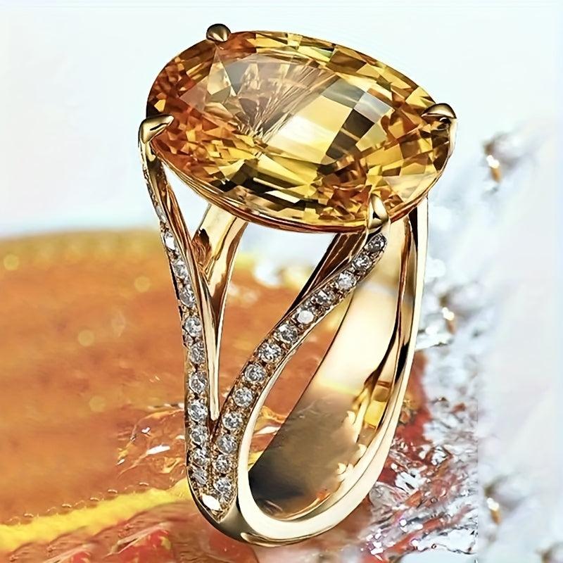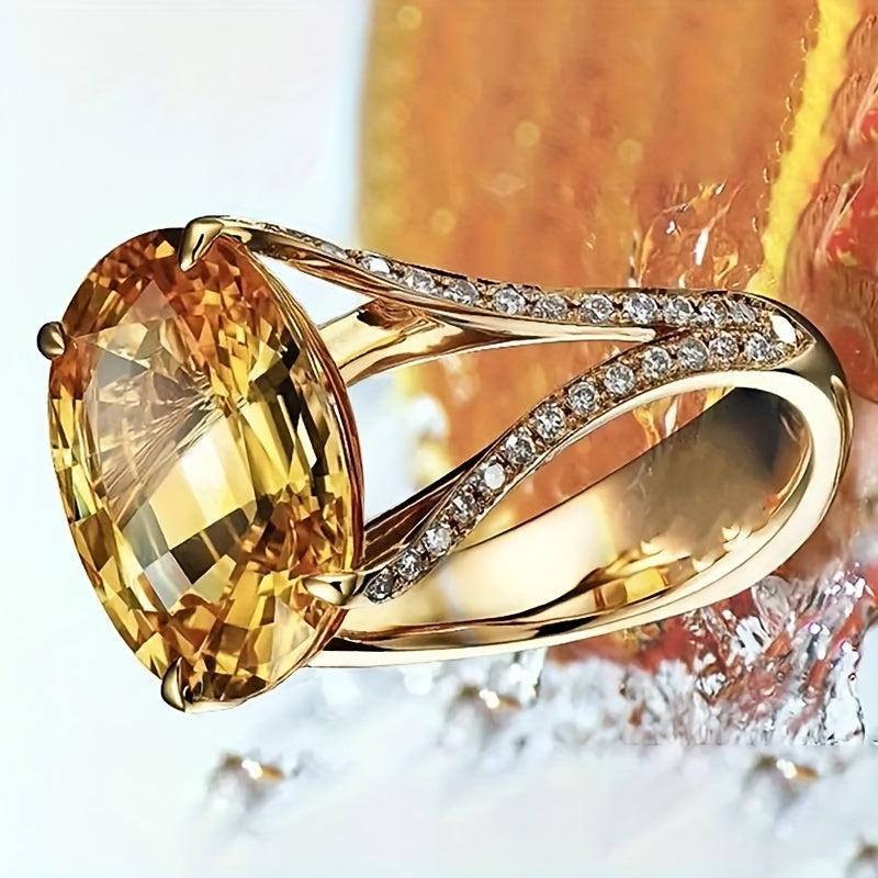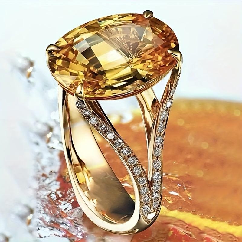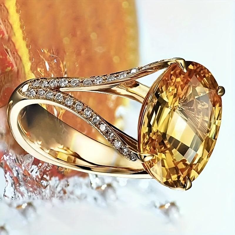 Elegant ring featuring sparkling yellow and clear cubic zirconia accents, perfect for weddings, engagements, anniversaries, parties, or everyday wear.