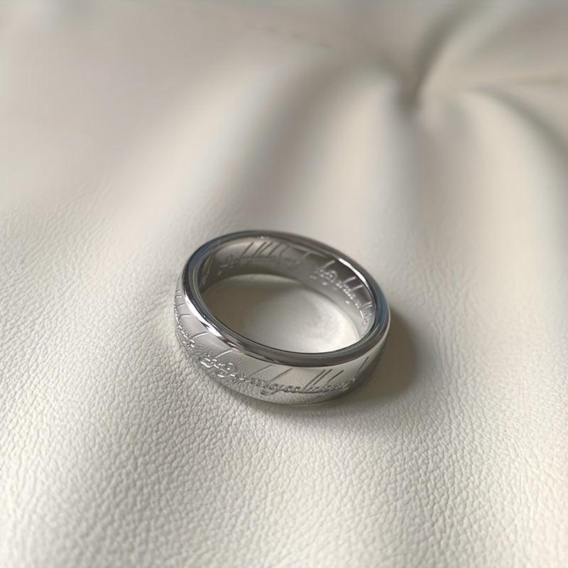 Classic style ring made of high-quality titanium steel with a golden plated finish. Features a double-sided 3D engraved design, perfect for daily wear for both men and women.