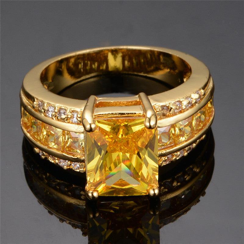 Elegant 18K gold plated copper ring featuring a synthetic cubic zirconia rectangle cut stone. Perfect for engagements, daily wear, and holiday gifts.