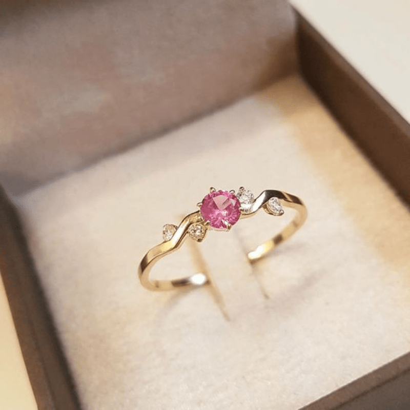 Elevate your style with this stunning 18k plated ring featuring an inlaid pink zircon. Perfect for weddings, engagements, and evening parties.