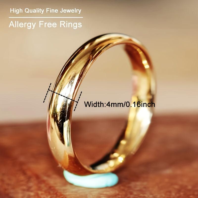 This 18K plated tungsten steel ring features a high smooth & bright finish. This 4mm wide arc band is perfect for engagements, weddings, and makes an ideal gift for couples. The ring is durable and stylish, perfect for everyday wear.