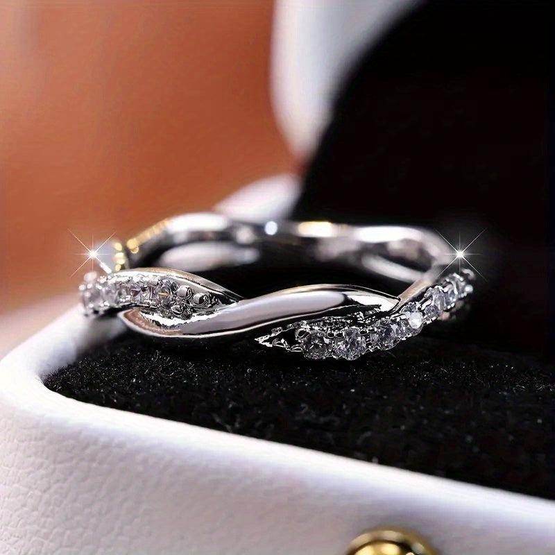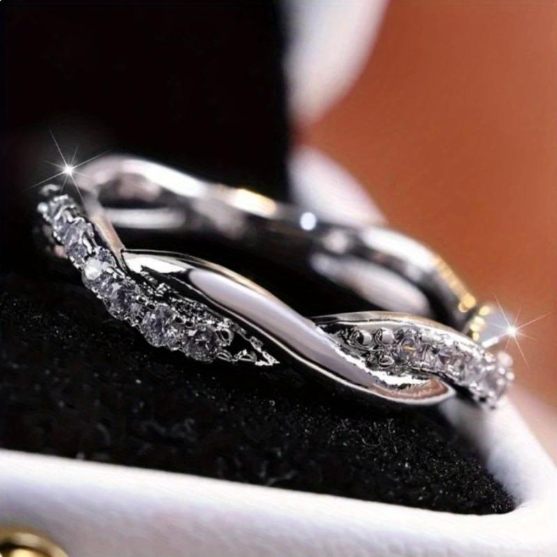 Add a touch of elegance to your look with this stunning 18K plated twisted ring adorned with sparkling cubic zirconia. Perfect for weddings, parties, and special occasions.