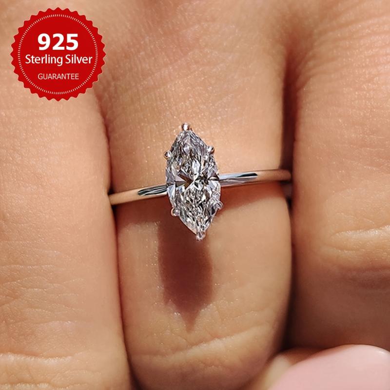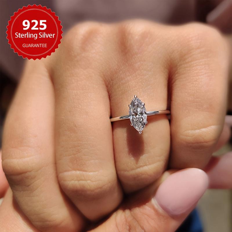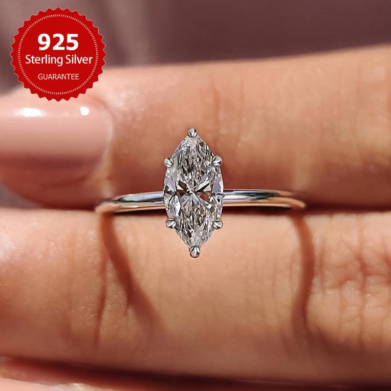 Stunning 1ct marquise moissanite engagement ring crafted in 925 sterling silver with a 6 prong setting. The perfect gift for brides and ring enthusiasts.