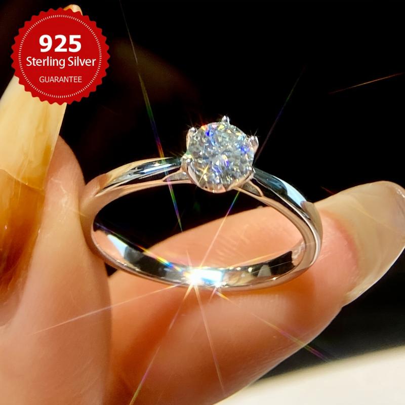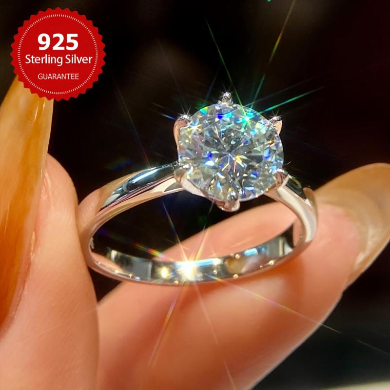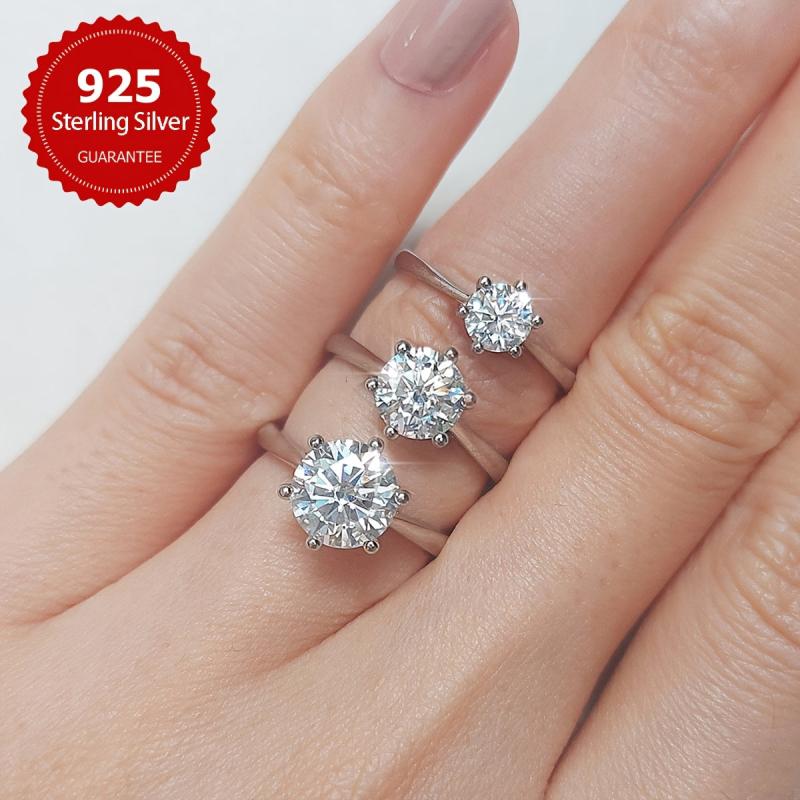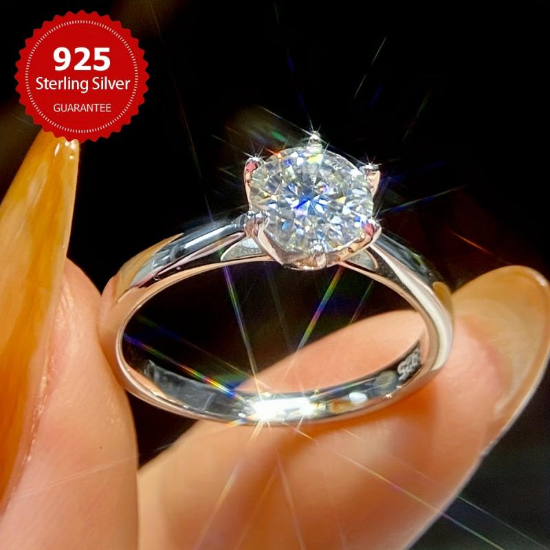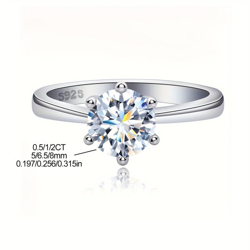 This stunning engagement ring features a 1CT round cut Moissanite stone set in 925 sterling silver. Perfect for a promise, wedding, or anniversary gift. Ideal for women with an April birthstone.