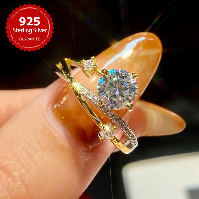 This sparkling 1CT moissanite ring is perfect for weddings, anniversaries, or as a promise ring. Made of high-quality 925 sterling silver, this ring is a noble piece of bridal jewelry that will make a special gift for your loved one.