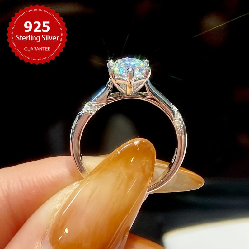 This elegant engagement ring features a 1CT round cut Moissanite stone in a 4 prong setting. Made with platinum-plated 925 sterling silver, it is a perfect all-season gift for any occasion.
