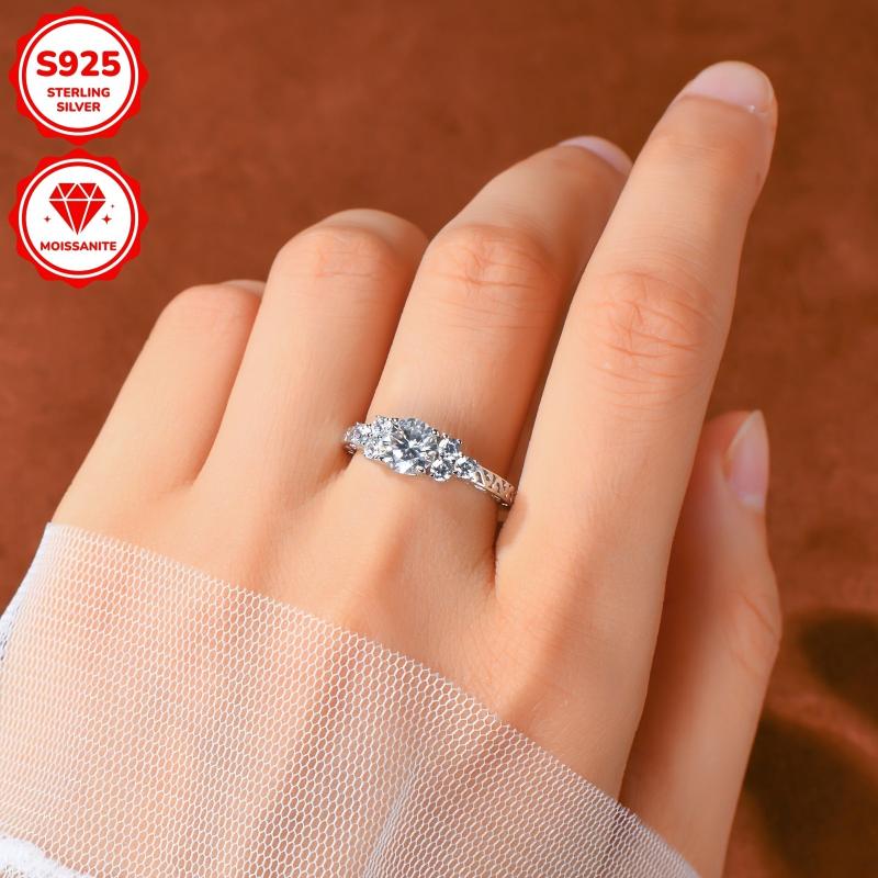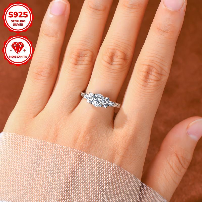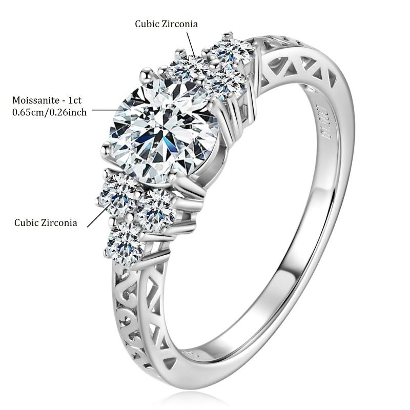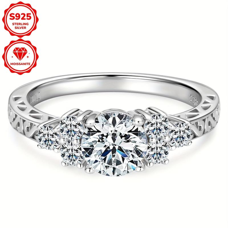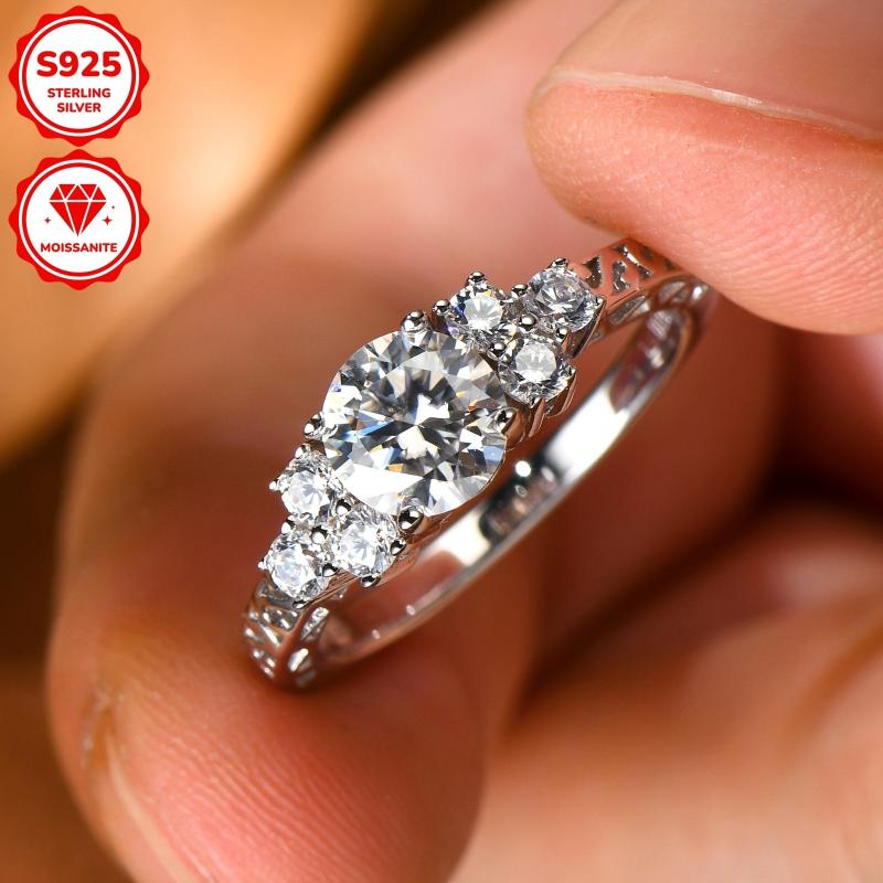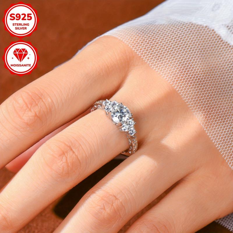 Elegant 1ct round cut moissanite engagement ring crafted in 925 sterling silver with an 18K golden plating. Perfect for a special occasion or as a thoughtful gift.