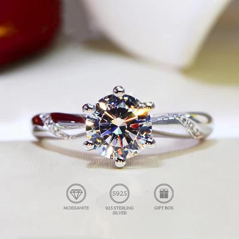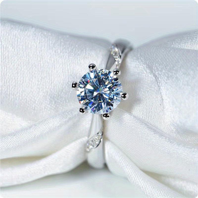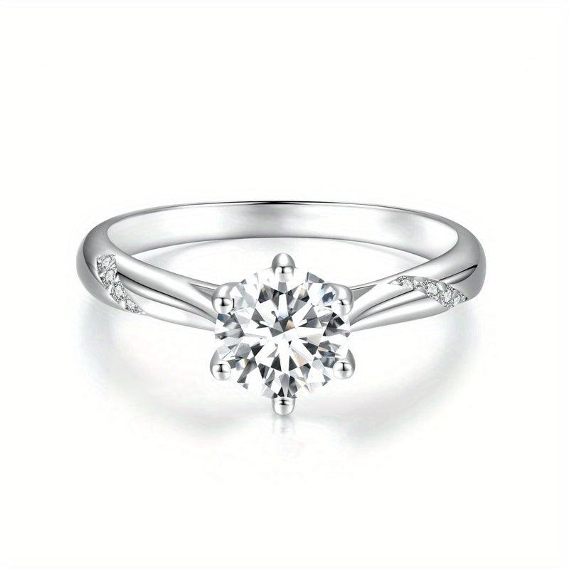 Elegant 1ct round Moissanite diamond ring crafted in S925 sterling silver, perfect for weddings. Features exquisite design and high-quality materials.