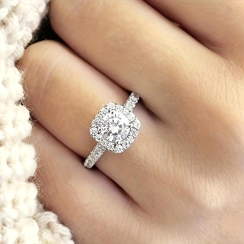 Elegant and sophisticated, this engagement ring features a sparkling square zirconia set in pure silvery s925. Perfect for any special occasion.