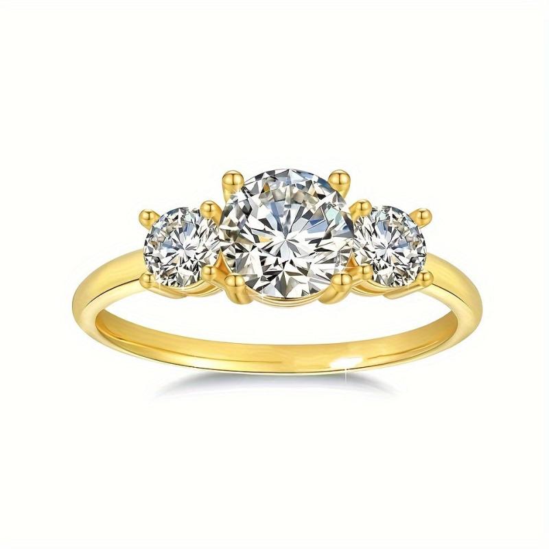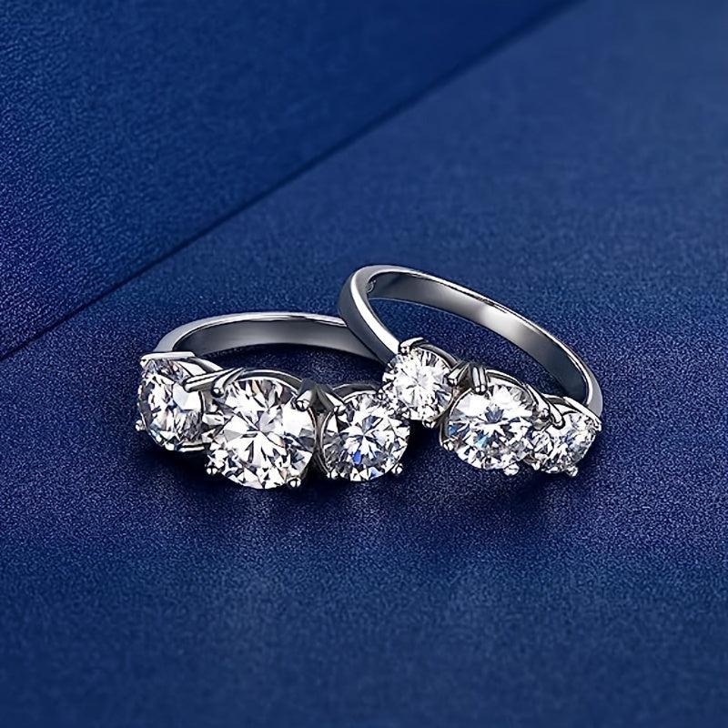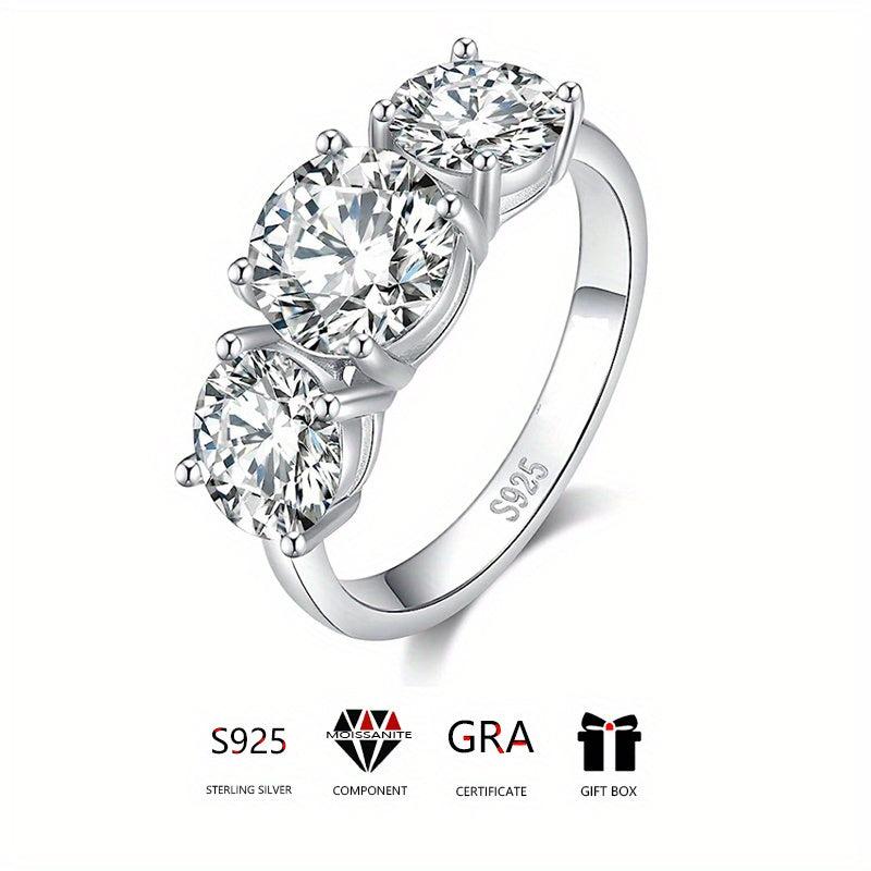 Add a touch of sparkle to your everyday look with this Moissanite three stone ring. This ring is made of 925 sterling silver and features 2 to 4 carats of Moissanite stones. Perfect for holidays, dates, and daily wear.