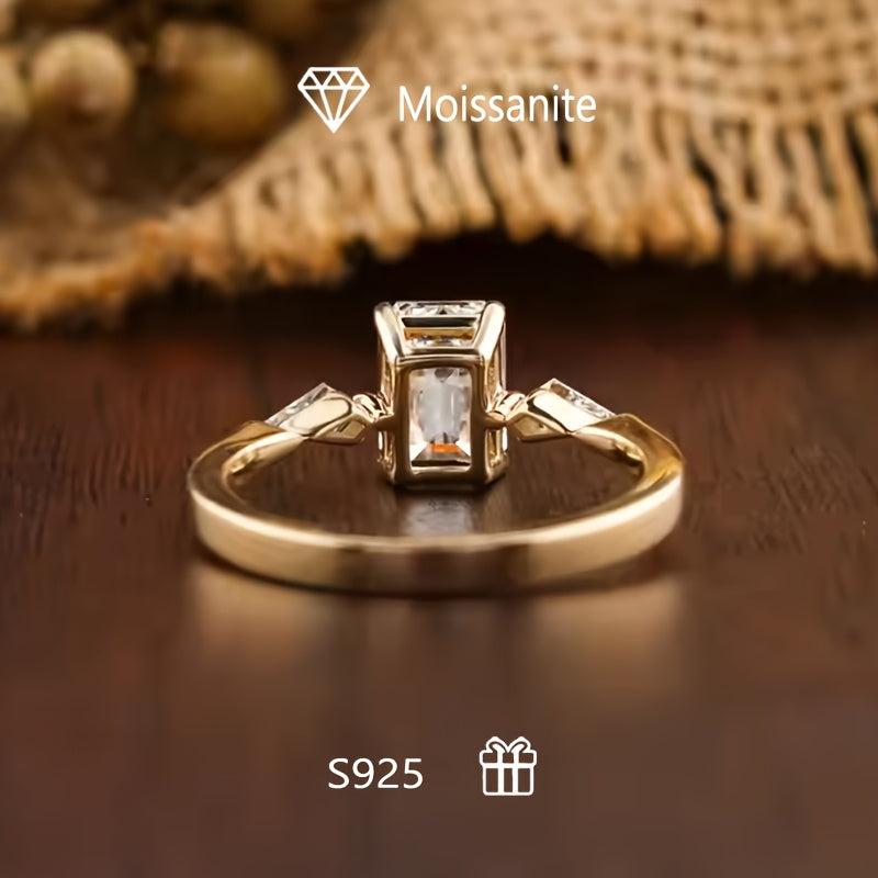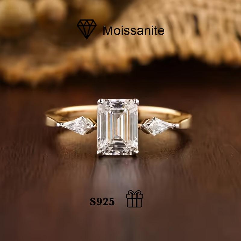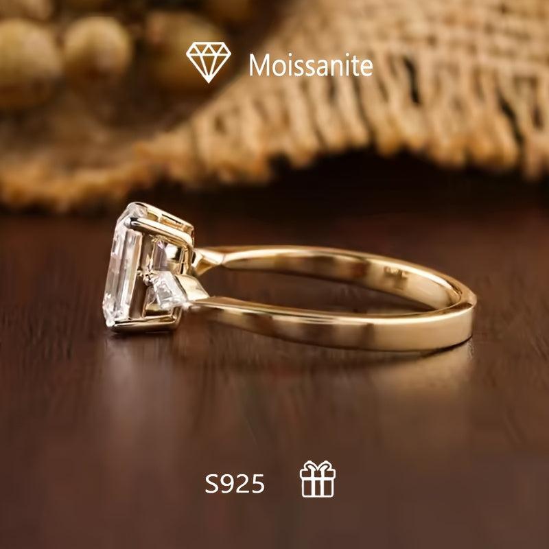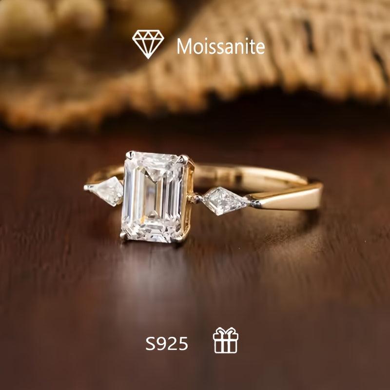 Elegant 2 carat moissanite 3 stone silver ring suitable for engagement. Made of S925 silver, hypoallergenic and unisex design.