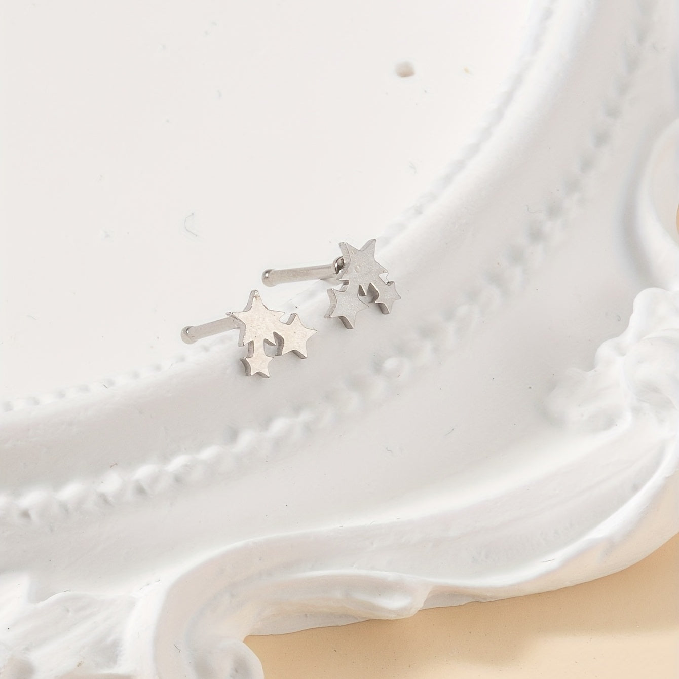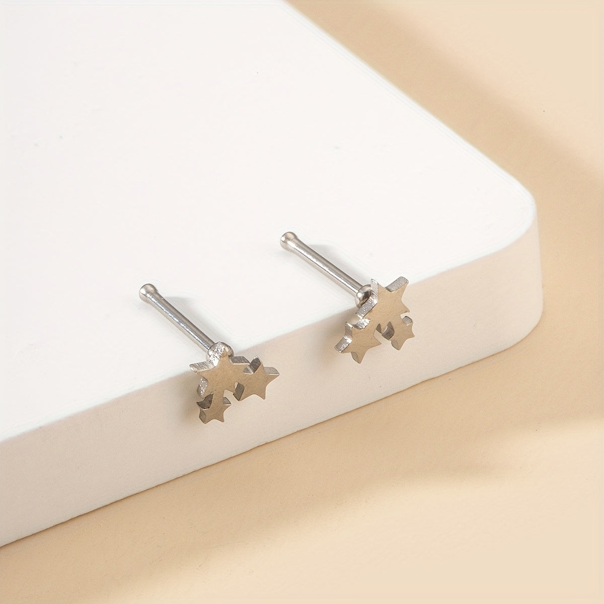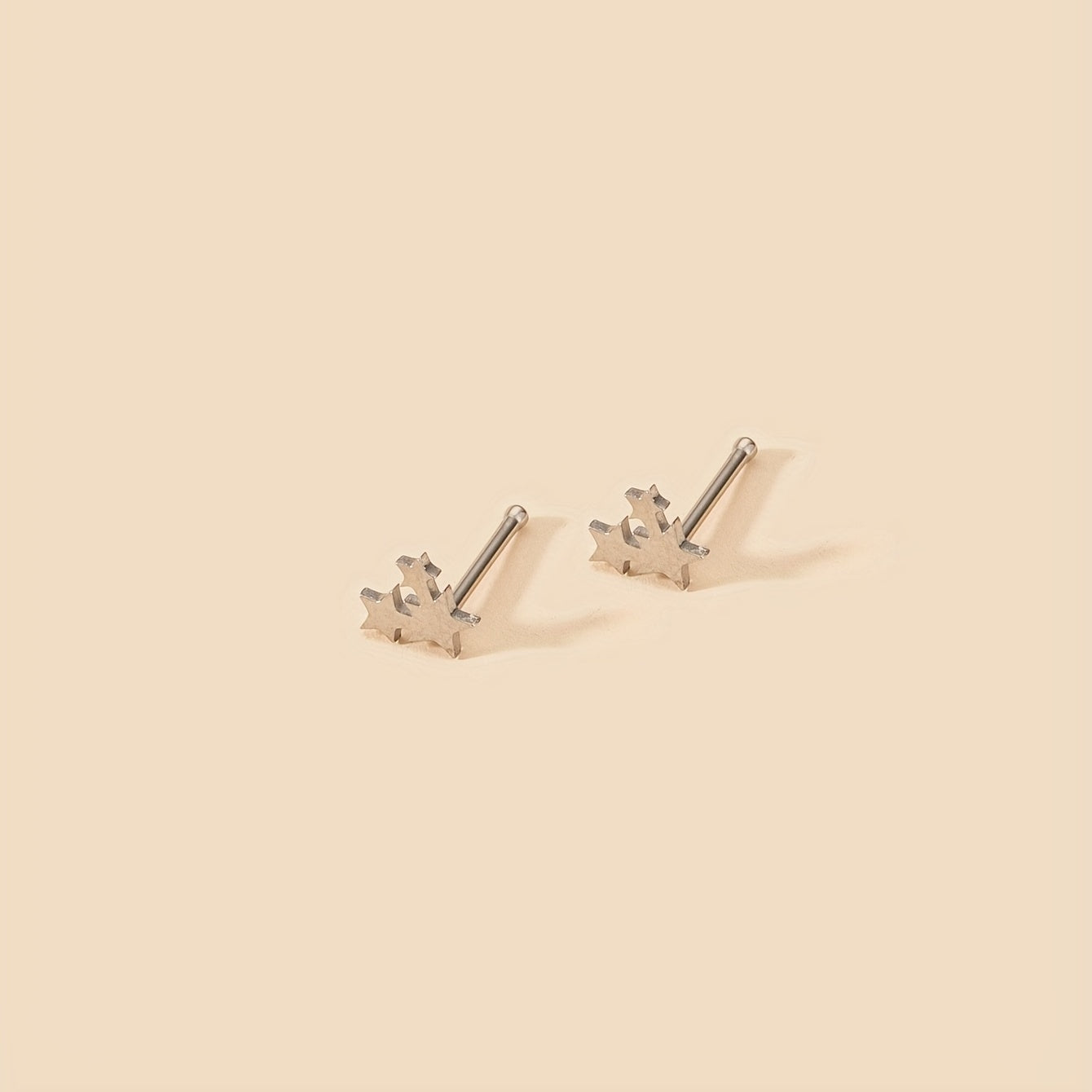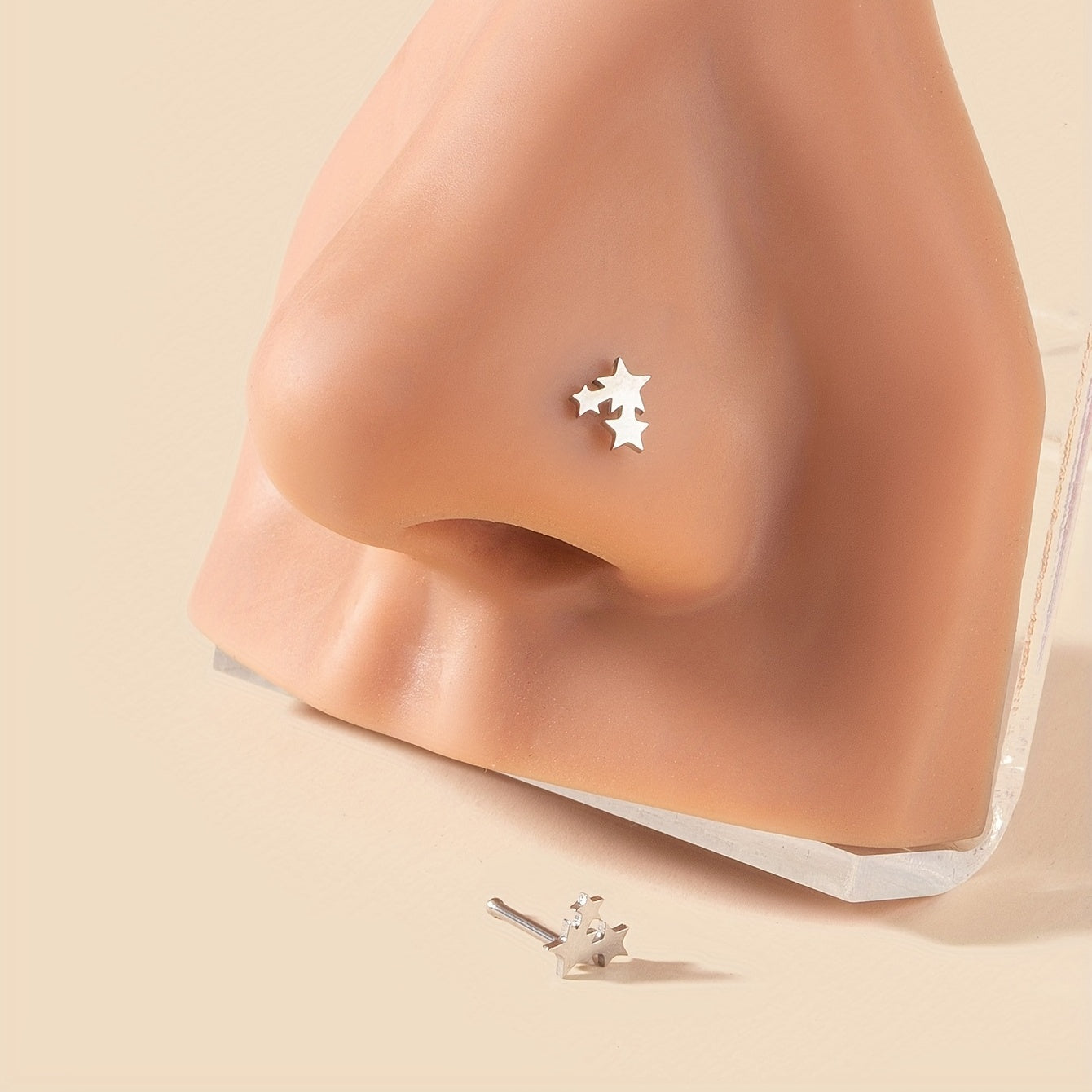 Add a touch of personality with this set of 2 star nose stud rings featuring a real piercing straight rod design. Perfect for adding a stylish edge to your look.