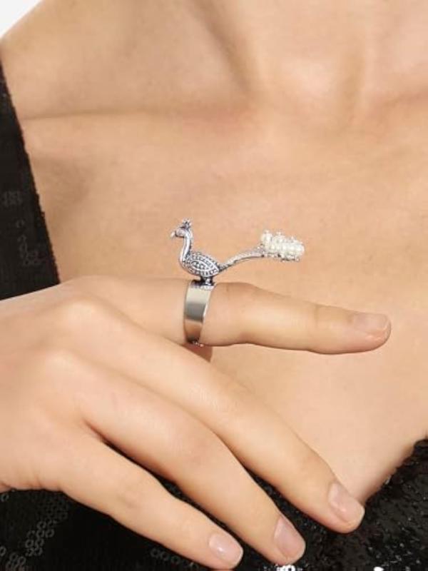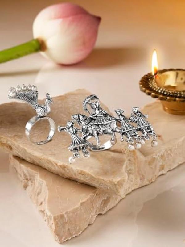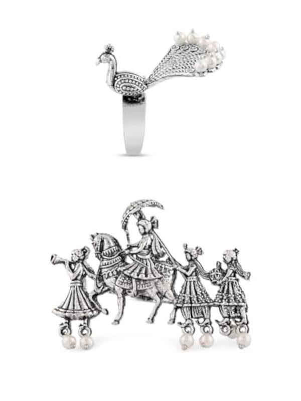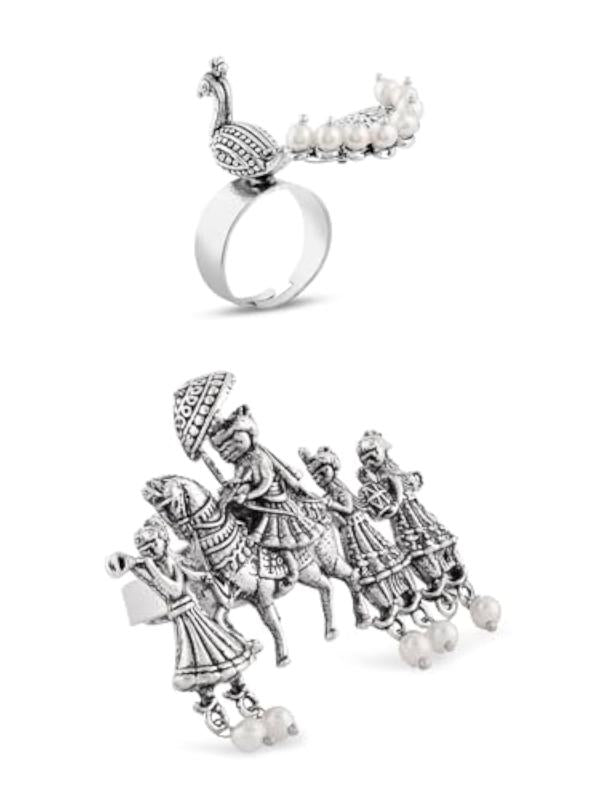 2 Tone Barat & Peacock Antique Oxidised Adjustable Finger Ring
