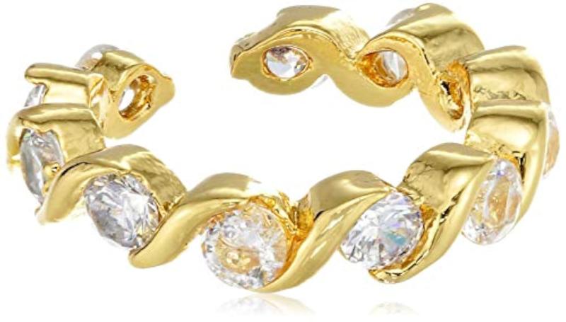 Add a touch of glamour to your look with this stunning 24Kt plated American diamond ring. It features exquisite detailing and a sparkling center stone that will elevate any outfit.