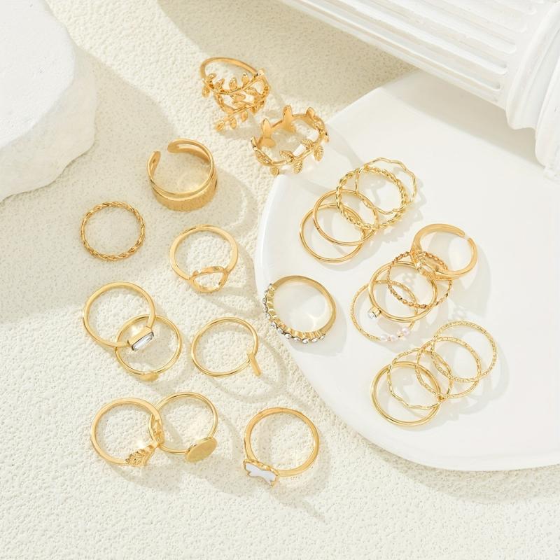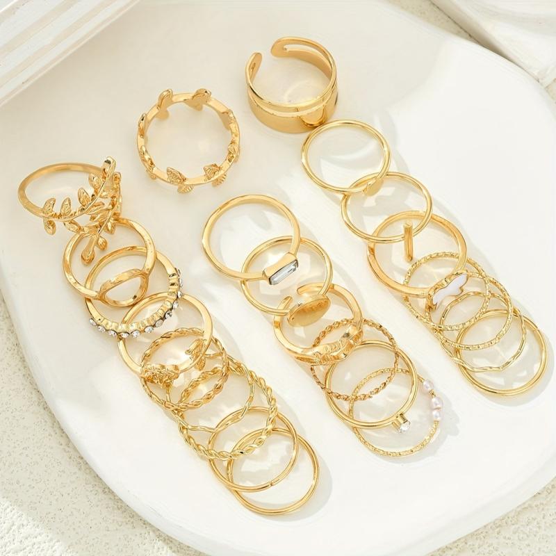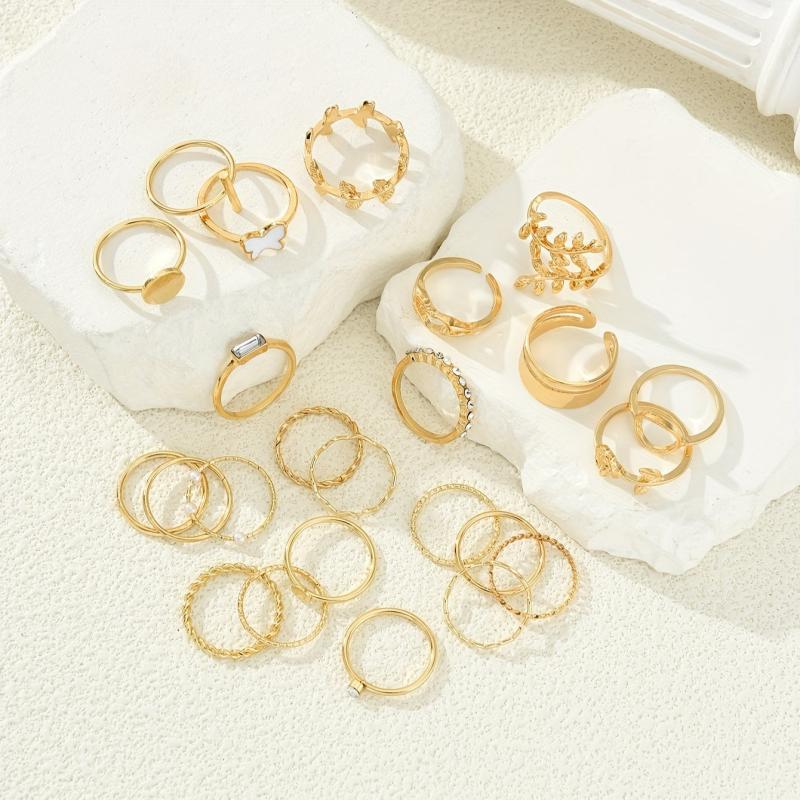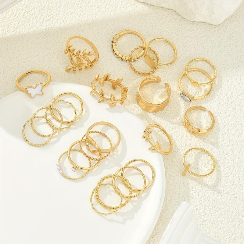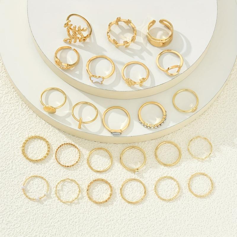 Add a touch of vintage glamour to your look with this set of 24 rings featuring various designs like butterflies, leaves, flowers, and more. The blingbling rhinestones, faux metal, and intricate patterns make these rings perfect for holiday parties, dates, and special occasions.