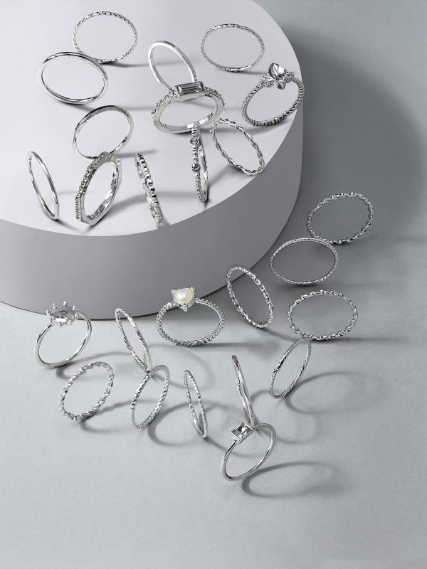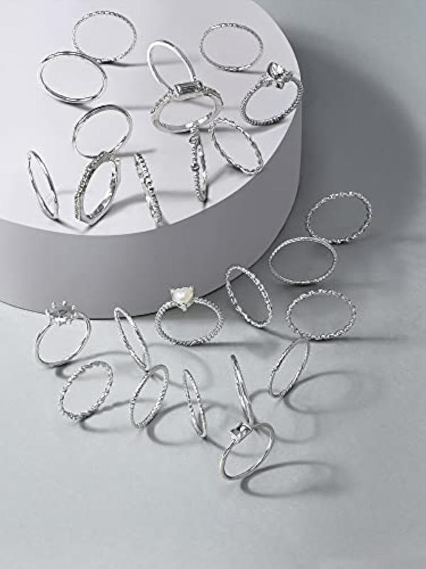 Elevate your style with this set of 25 stunning stackable finger rings for women. Crafted with exquisite detail, these rings add a touch of elegance and charm to any outfit.
