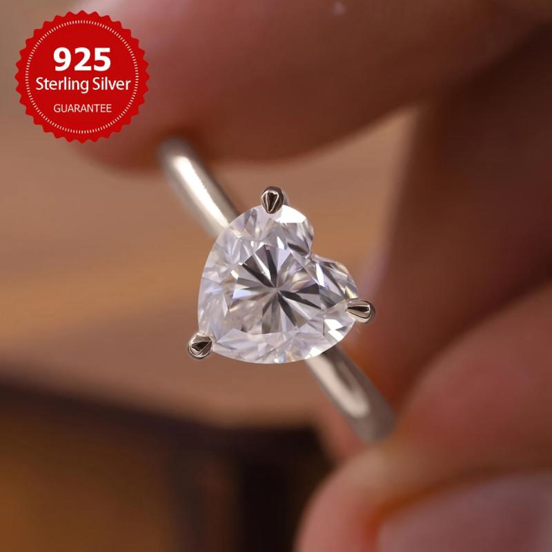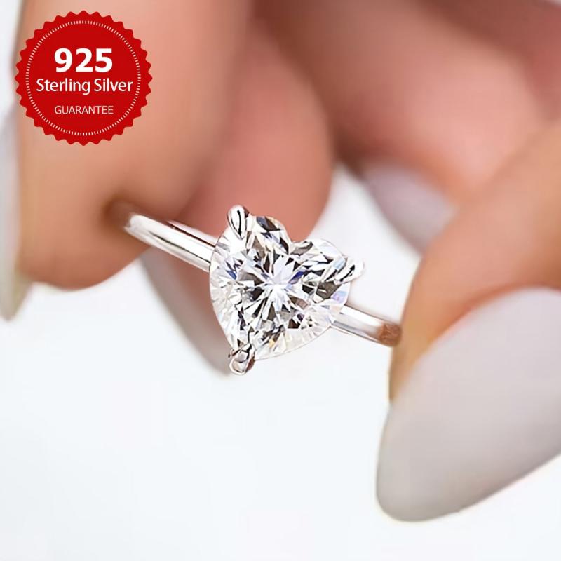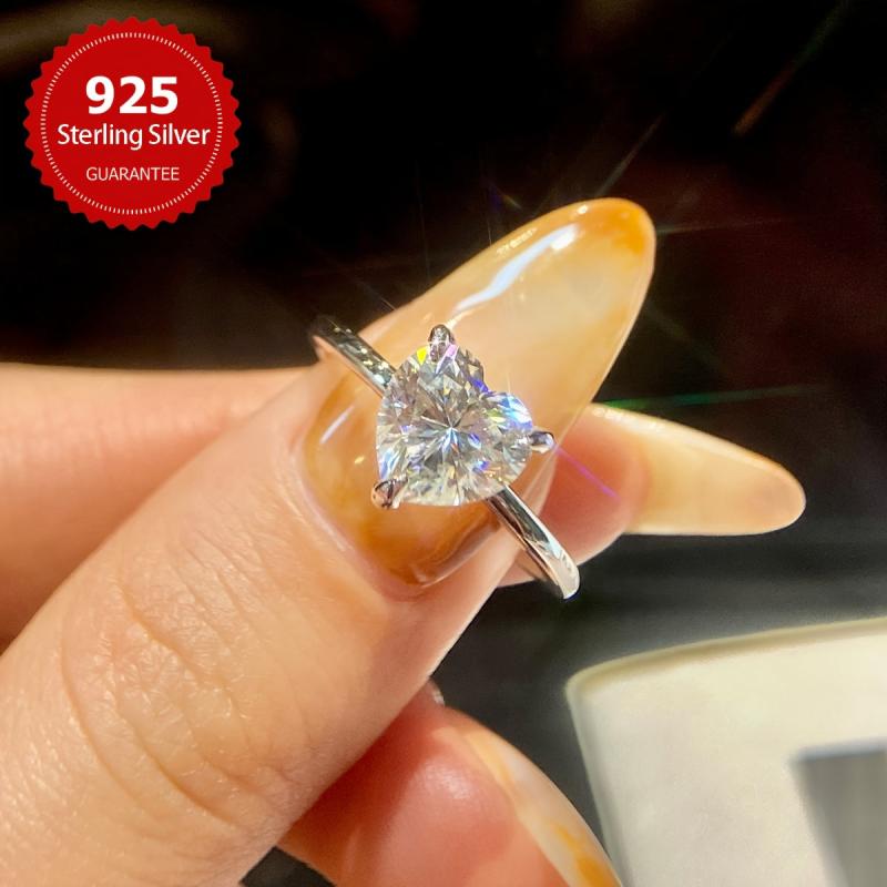 This stunning ring features a 2ct heart-shaped Moissanite stone set in a 925 sterling silver band. Perfect for engagements, weddings, anniversaries, or as a Valentine's Day gift.