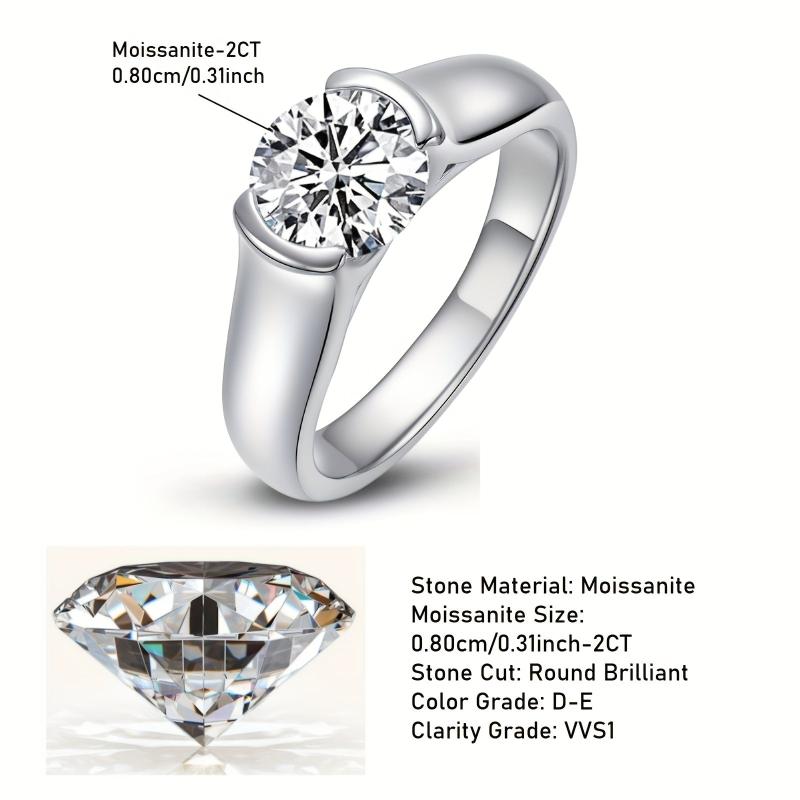 This stunning 8mm Moissanite ring features a sparkling 2CT round synthetic gemstone set in high-quality 925 sterling silver. Perfect for weddings, anniversaries, and Valentine's Day.